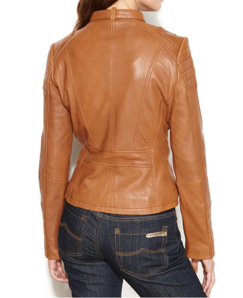 Fashion has been a part of women life since they were born, but the choice of clothing has drastically changed in this era and focused on more tough looking outfits that can give an assertive look while remaining a fashionista. Women’s brown leather jacket is available in genuine leather to provide the best outcome when worn. The elegant biker brown leather jacket has a modern front zipper closure and unique buckle belt collar giving of a strong look. Zipper pockets and flapped pockets are present on both sides of chest and zipper pockets are present on both side of waist helping to lift the vibe of the jacket also showcasing the intricate detailed design of the motorcycle brown leather jacket. Zipper closure is present on padded cuffs and padded detailing is present on shoulders which spread across 1/3rd of the sleeves of women’s brown leather jacket.Â