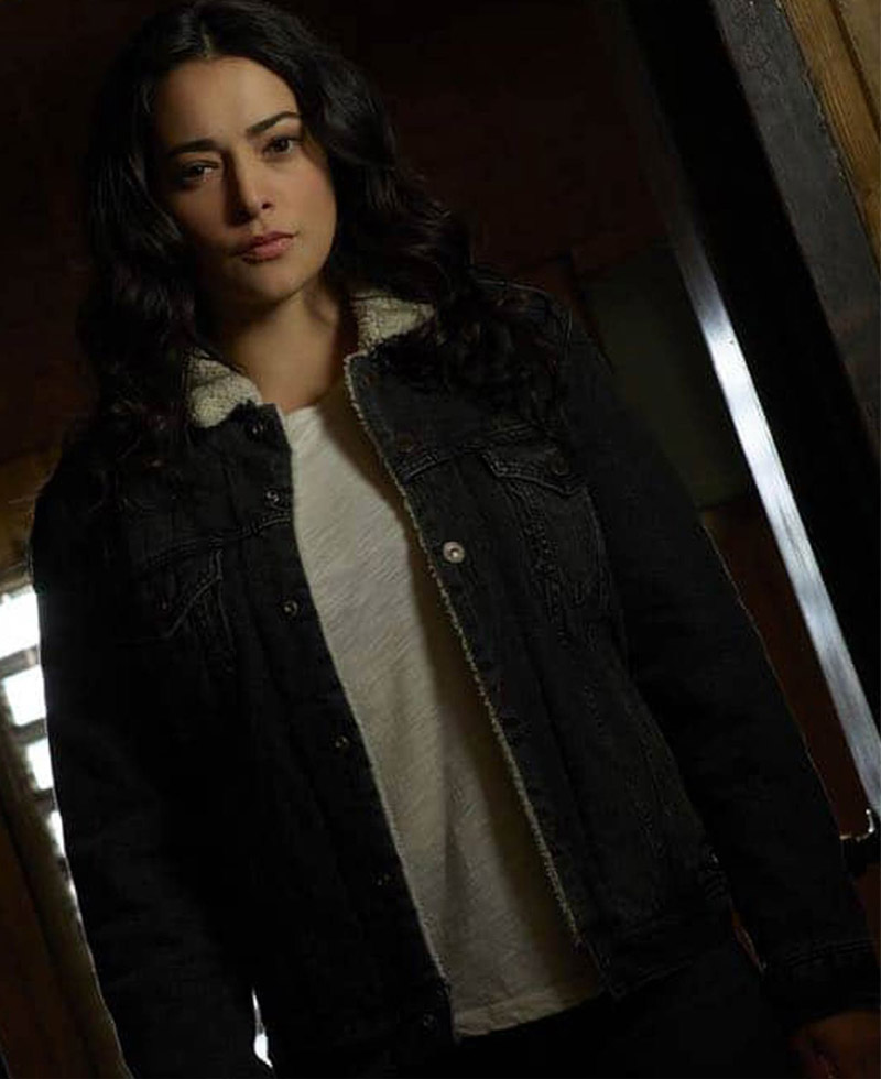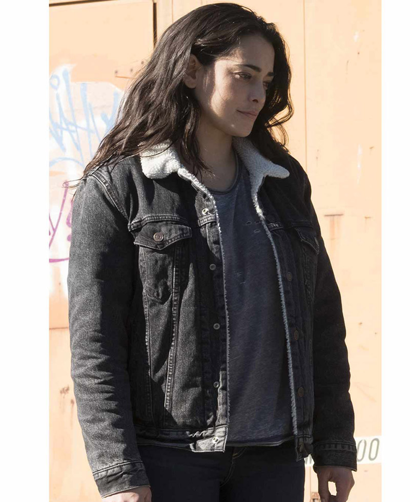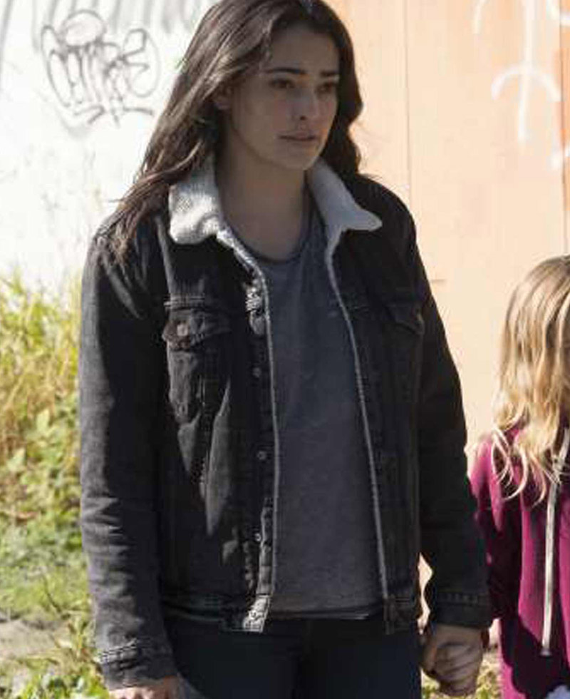 Natalie Martinez The Crossing Reece Black Denim Jacket with Fur Collar
