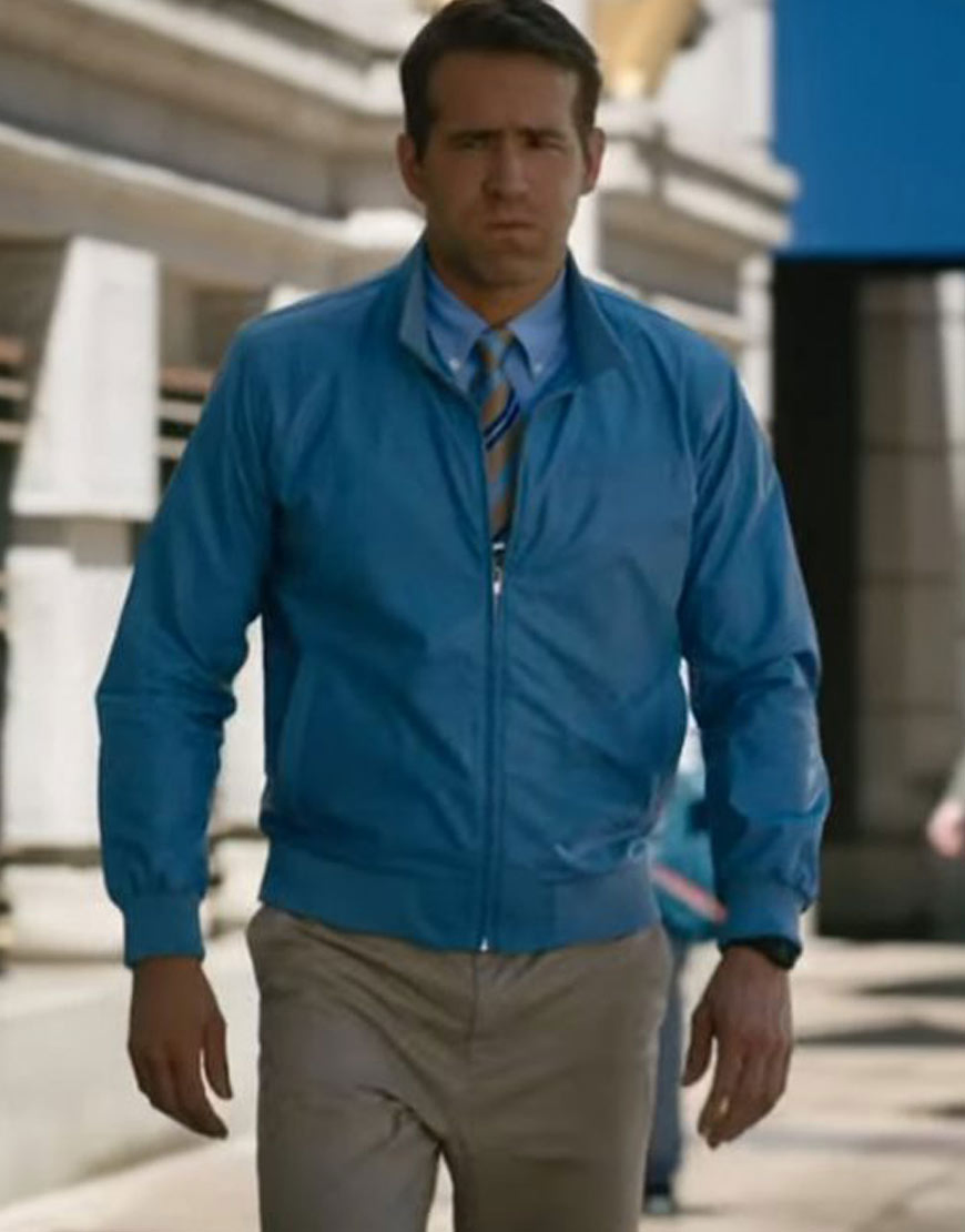 Ryan Reynolds Free Guy Blue Leather Jacket