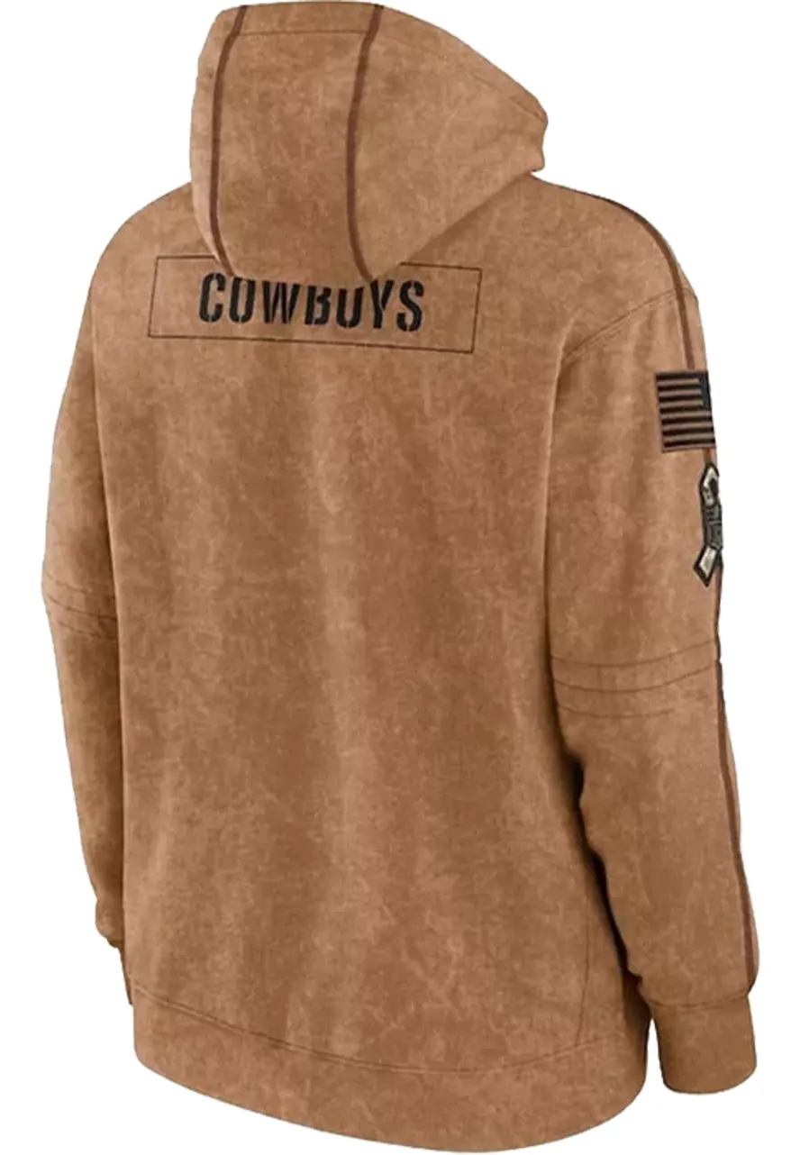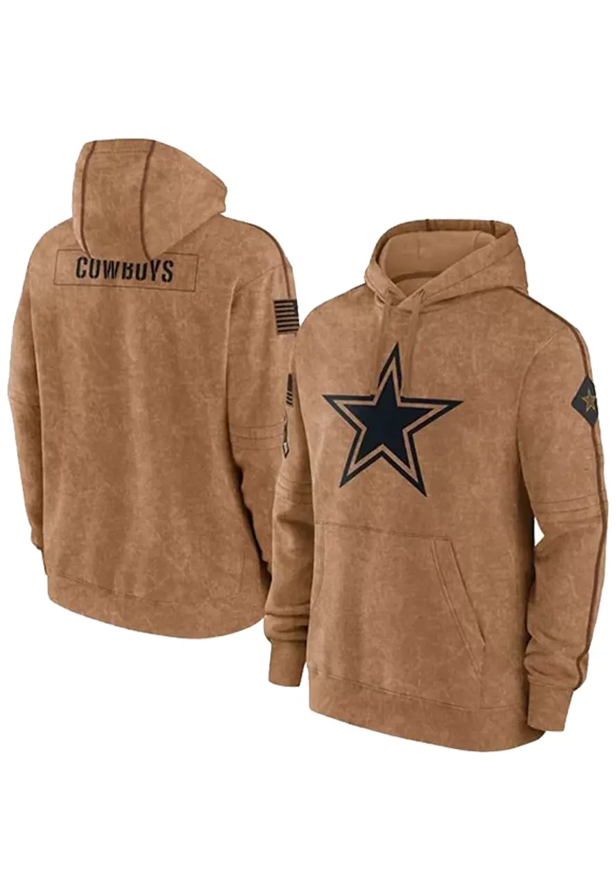 The Salute to Service Cowboys Military Hoodie Will Provide You With the Utmost Warmth and Comfort During the Colder Months. This cowboys military hoodie is an Ideal Choice to Wear Casually or Occasionally to Own Highly Fashioned Looks Whether You’re Enjoying Outdoor Activities or Just Relaxing at Home. The Cowboys Military Hoodie Has Been Fabricated by Premium-quality Fleece to Make It Warm and Ageless, While Its Soft Viscose Inner Makes It Comfortable and Moisture-free. The Elegant Brown Color Will Look Stunning Over Any Outfit in Your Wardrobe. The  Salute to Service Hoodie Has Been Tailored With Hooded Collar, Pullover Style, Rib-knitted Cuffs and Hemline, and Kangaroo Style Pockets. Stay Warm and Be Stylish While Wearing the Cowboys Military Hoodie.