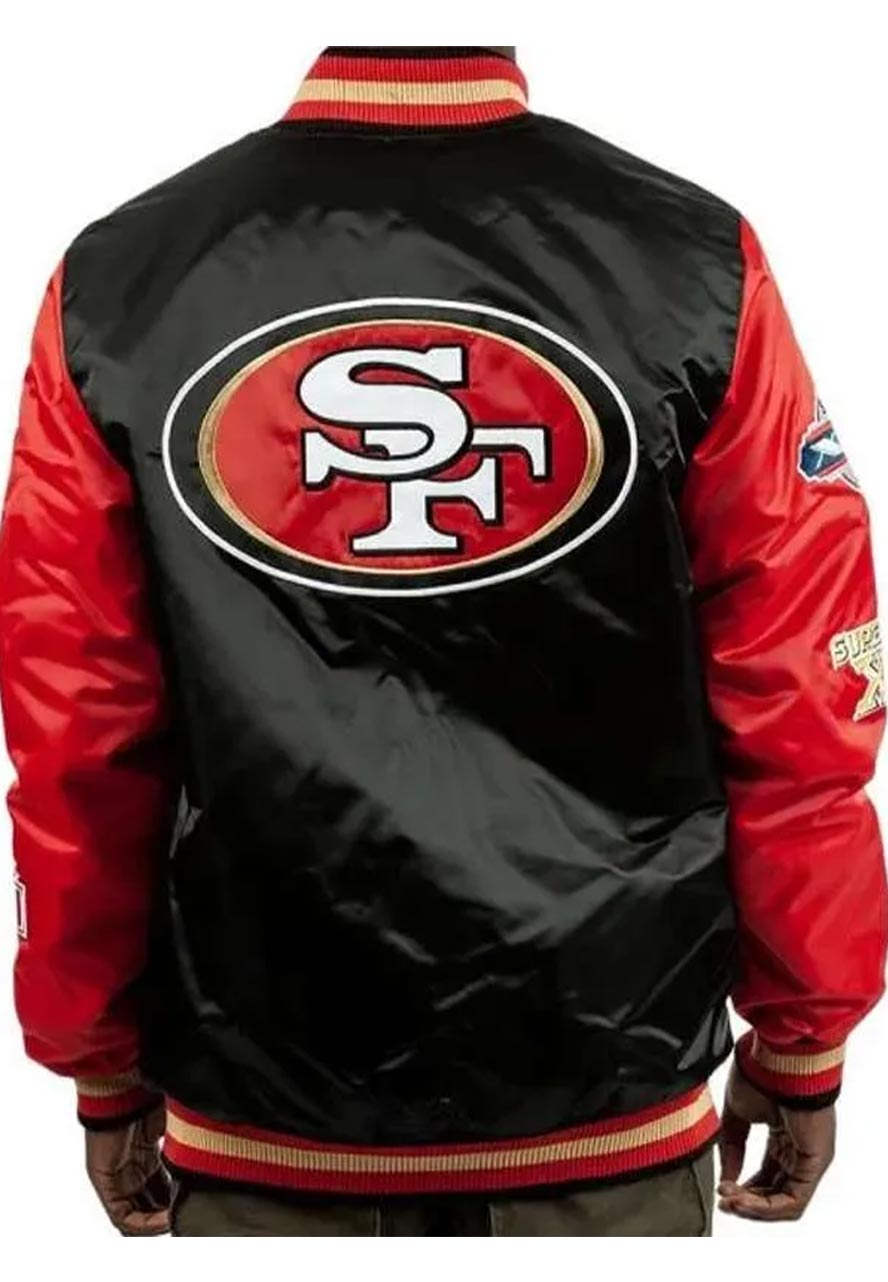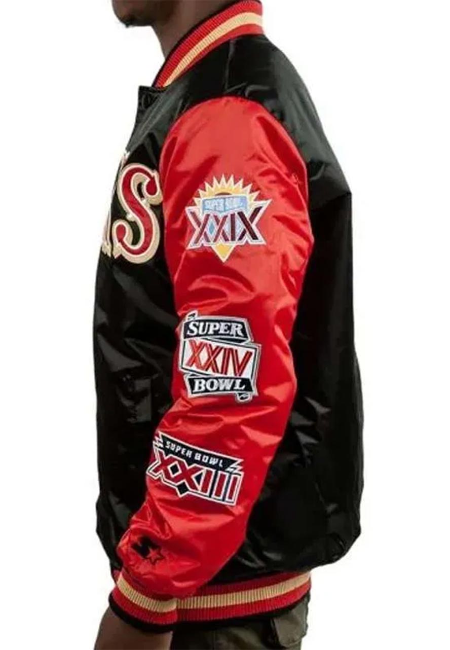 The San Francisco Champs 49ers Jacket Will Show Your Appreciation for Both Fashion and Comfort – a Perfect Blend of Style and Practicality. With Its Premium Satin Construction, This 49ers Starter Jacket is Both Lightweight and Suitable for Year-round Wear. Plus, the Soft Viscose Lining Ensures Your Comfort All Day Long. The Elegant Red and Black color combination Adds a Touch of Charisma to Your Persona, Making It Even More Captivating. The San Francisco Champs Patches 49ers Jacket Has Been Expertly Crafted, Featuring a Rib-knitted Stand-up Collar, Secure Buttoned Closure, and Convenient Side Waist and Inner Pockets to Enhance Both Its Fashion and Functionality. The 49ers Jackets is a Garment That Speaks of Refinement.