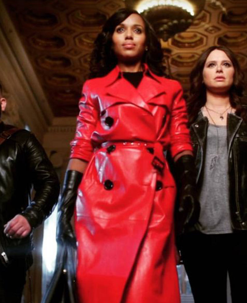 Renowned actress Kerry Washington wore Olivia Pope Coat and made special place in the hearts of the viewers. Top class real leather or PU leather is used for the making of outer cover. Unusual red shade makes you stunning. It is trench coat therefore it is in large size. The double breasted style is fascinating. Kerry Washington has played the role of Olivia in the television series named as “Scandal”. Olivia Pope Trench Coat has rayon soft fabric internally. Adjustable belt is given at waist to look smarter. The sleeves are large in measurement and narrow in appearance. Like other coats vent cutting is present on the backside. Separate piece of leather is added on upper part of back and front. Lapel collar is very beautiful. Black buttons are looking enthralling on red attire. Scandal Kerry Washington Coat has open hem cuffs.
