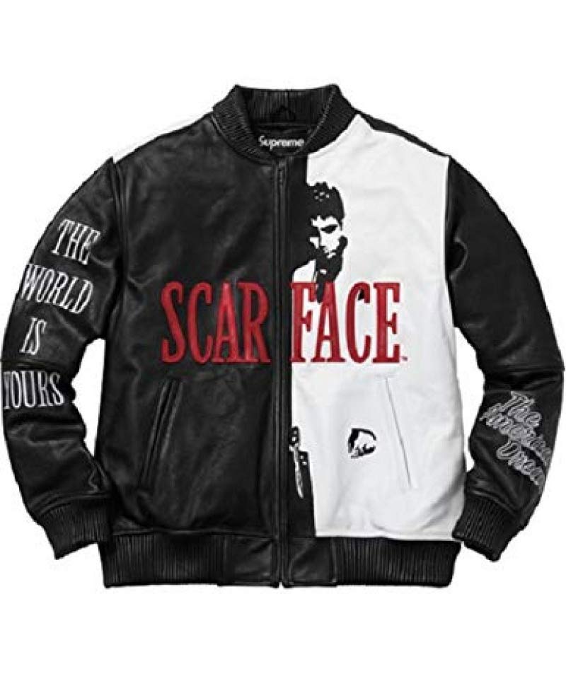 scarface leather jacket is formed from the high and enduring quality of genuine leather material. This jacket has a material quality that remains long. This jacket will shield you against cold weather and will make you feel warm and cosy. This jacket is very comfortable that you can wear it all day long because it contains inner soft viscose lining. tony montana jacket has a rib knitted style collar. This leather jacket has full length sleeves with rib knitted style cuffs. This jacket has front ykk branded zipper style closure that fits in perfectly with the style of this jacket. This jacket has two front pockets to secure stuff in them. You can get this jacket in black and white color. You will embrace the detailing of this leather jacket. Follow the details and order this jacket. We guarantee you that you will not disapprove once after buying this jacket.