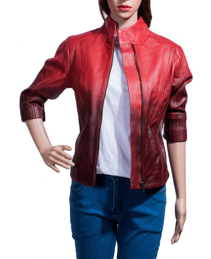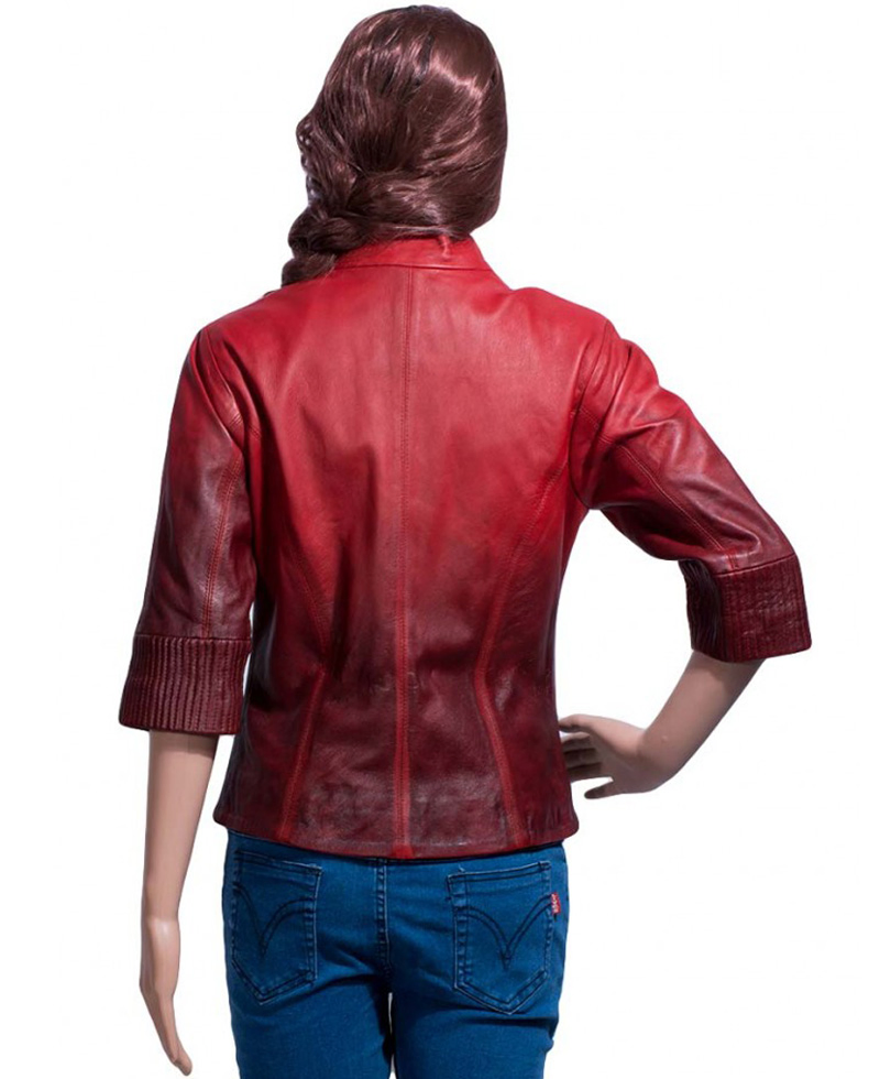 Age of Ultron Film Scarlet Witch Two Shades Red Leather Jacket