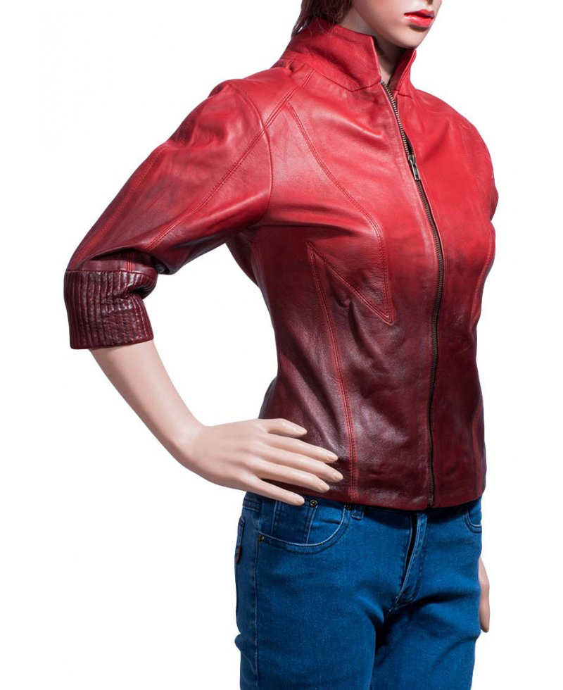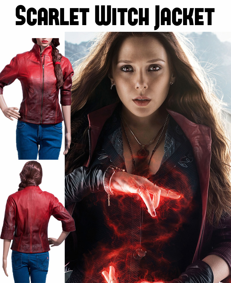 Generally women select very dazzling outfit which may make them charming. The Scarlet Witch Jacket is the ladies jacket that has been liked too much by the ladies of throughout the world. It is the best replica of outwear that has shown in the movie “Avengers Age of Ultron “. The fabulous Scarlet Witch Black and Red Two Shades Jacket is now the top fashion dress. All fashion lovers’ ladies wear it with proud and confidence because they know that they will look remarkable if they wear Scarlet Witch Leather Jacket. It is worn by Elizabeth Olsen who is well-known star of the American film industry. The sheep skin real leather is used in the manufacturing that is long lasting. Red is the most favorite color of all women and it is prepared in two shades of red. The high neck collar style of Scarlet Witch Avengers Age of Ultron Red Leather Jacket looks graceful. The quilted viscose inner lining is very comfortable in wearing. The front zipper closure is given for easy wearing. No outside pocket is present; only two inside pockets are added in Captain America 2015 Movie Wanda Maximoff Jacket.