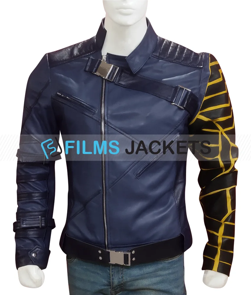 The idea of this appealing and stylish blue jacket is taken from the famous upcoming American science fiction mini web television series called The Falcon and the Winter Soldier where the actor Sebastian Stan wore this jacket as the character of the Winter Soldier a.k.a Bucky Barnes. The external side of this jacket is manufactured with premium quality genuine leather material. The inner side of this jacket is fabricated with a smooth and soft viscose lining that keeps you warm and comfortable all the time. The jacket comes in a blue color. Winter soldier jacket has a stand-up style collar. There is a ykk branded zipper on the front side of this Winter Soldier jacket. The jacket has full length style sleeves on open hem style cuffs. Sebastian Stan The Falcon and The Winter Soldier Leather Jacket has front zipper pockets as well.