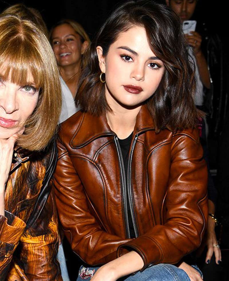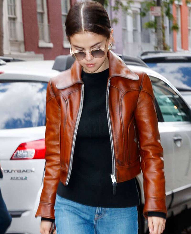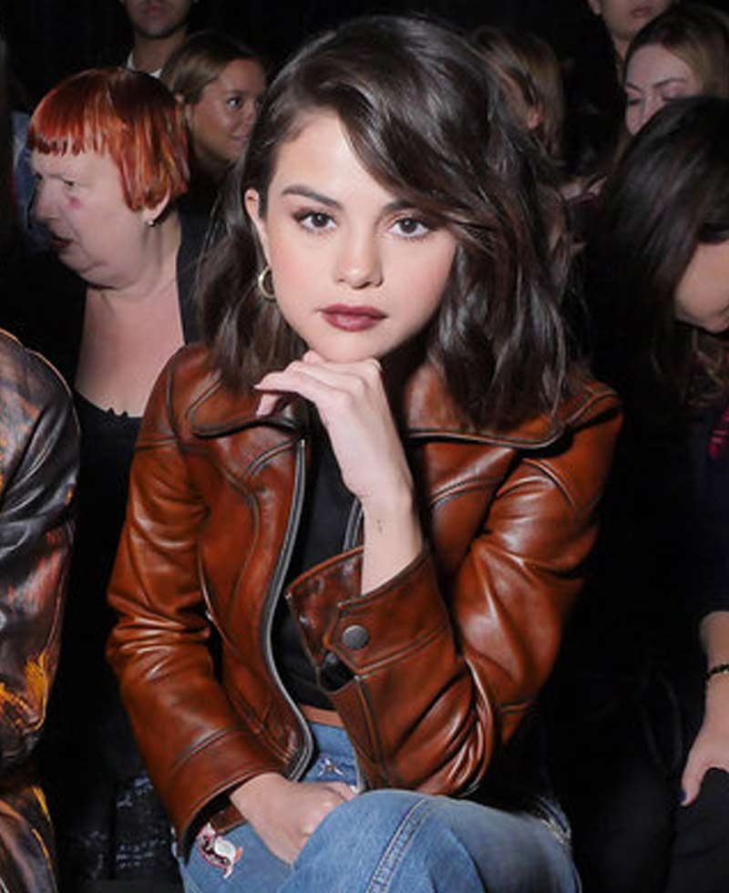 selena gomez brown leather jacket is manufactured from high and enduring quality genuine leather material. We guarantee a long lasting material quality that stays absolutely perfect for a long time. This jacket is specially designed to keep you protected from cold climates and to make you feel warm and cozy. The soft viscose lining on the inner side of this jacket makes this jacket comfortable to wear. selena gomez brown leather jacket has a shirt style collar. This leather jacket has full length sleeves with button cuffs. The front ykk branded zipper style closure fits in perfectly with the style of this jacket. This jacket has two waist and two inside pockets. This jacket comes in a brown color. Order this jacket right now and see the amazing quality of work and detailing all by yourself. You will not regret after buying this garb we assure that.