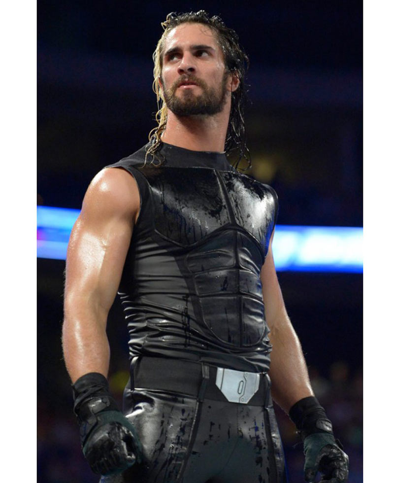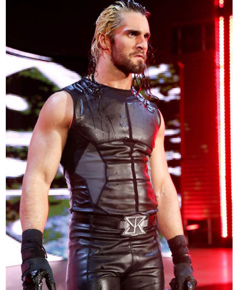 The professional wrestler Seth Rollins is very famous for best wrestling performance. He wore Seth Rollins Vest and looked fabulous. The exterior part is manufactured from genuine leather or faux leather. Inside the soft rayon lining is provided. Engaging black shade is enhancing the beauty. You will found six packs designing on front side of the attire. Collarless round neck style is very attractive. Seth Rollins Black Leather Vest has grey side patches. There is no sleeve present in the apparel. The frontal shutting down is connected with high quality YKK zip. You can wear it in any gathering with proud because it provides you opportunity to look better. You can purchase it without any hurdle because of easiest availability. The price is very economic and you can buy within your pocket. Get Seth Rollins Leather Vest at once and start the journey of success.