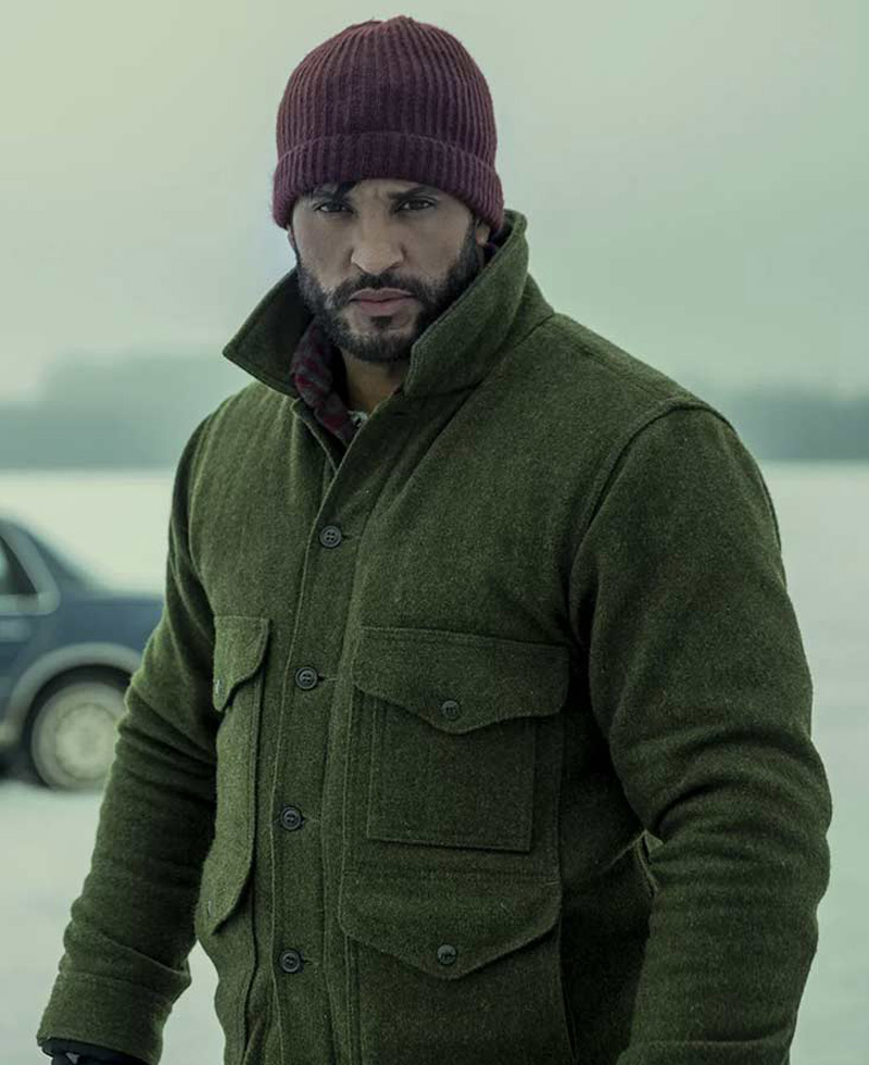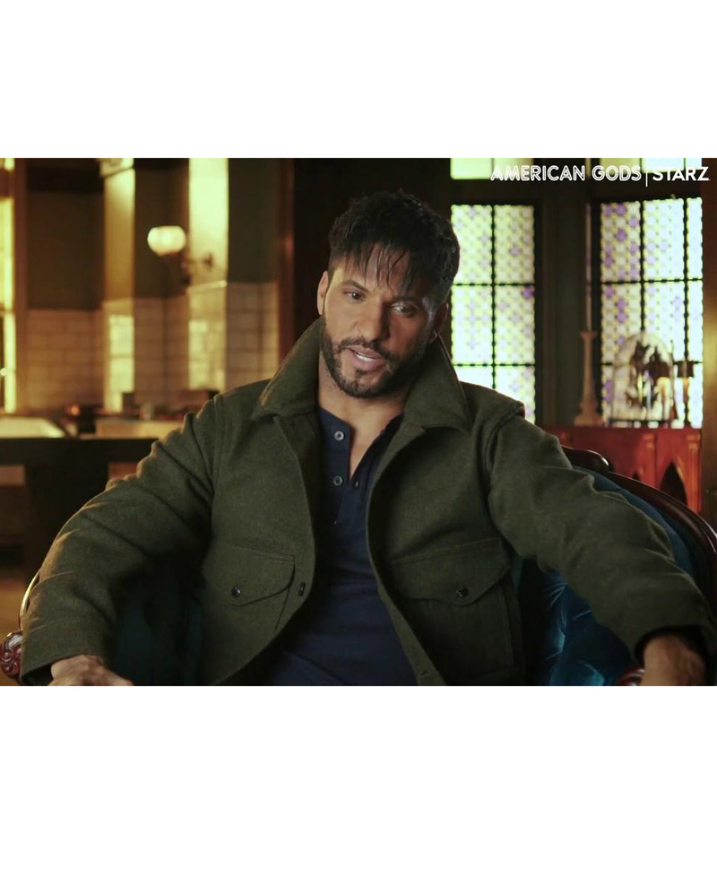 The idea of this jacket is taken from the famous American fantasy web television drama series called American Gods season 03 where the talented actor Ricky Whittles wore this jacket when he was depicting the character of Shadow Moon. The jacket has an inner soft viscose lining that gives you warmth and comfort. The outer side of this Shadow Moon jacket is fabricated with wool material of premium quality. The Vibrant and mesmerizing green color makes the jacket more appealing to wear. There are buttons attached to the front side of this jacket for the closure. The jacket comes with a stylish stand-up style collar. Ricky Whittles American Gods season 03 jacket has buttoned cuffs on full-length style sleeves. The jacket comes with two front waist pockets along with two flap chest pockets to secure stuff.