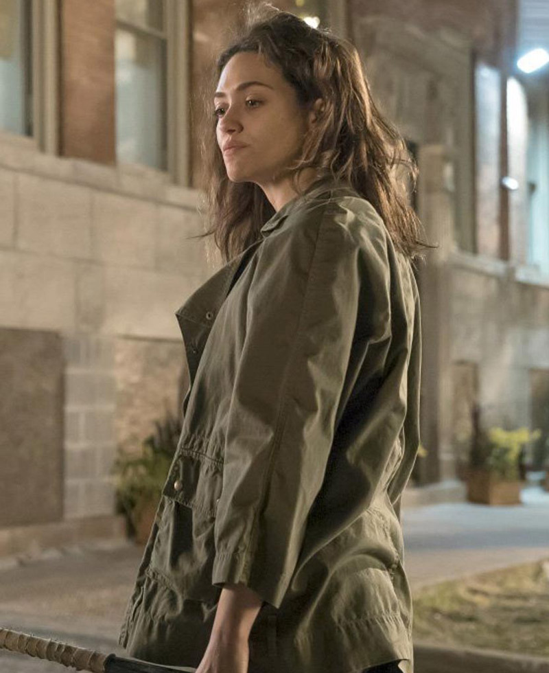 In the American television drama series titled as shameless, the actress Emmy Rossum wor this jacket when she was playing the character of Fiona Gallagher. This Fiona Gallagher jacket is made from rich quality cotton material. It has internal soft and cozy stitching of viscose lining that keeps you warm. The mesmerizing green color is magnifying the beauty fo this apparel. The shameless Emmy Rossum green jacket has a snap tab front fastening. It comes with two front flap pockets and internal pockets where you can keep your stuff. It has a shirt style collar to make this jacket look more presentable. It comes with open hem style cuffs on full length sleeves that make this jacket all set to wear.
