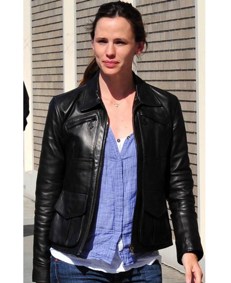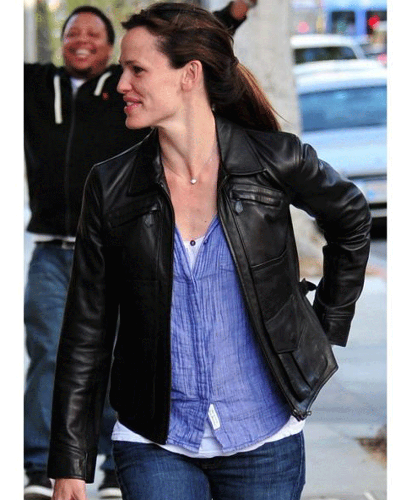 Jennifer Garner Shirt Collar Black Leather Jacket