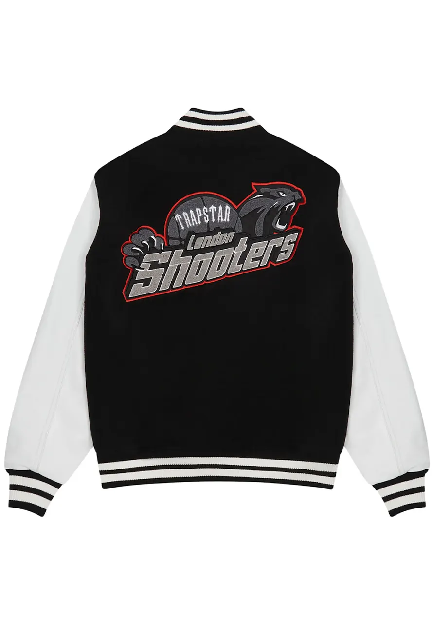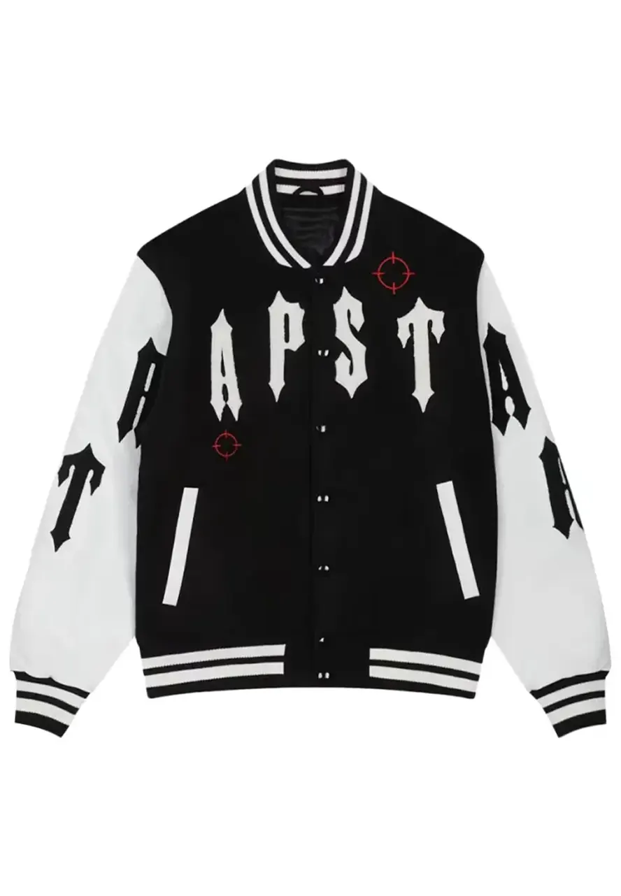 The shooter’s Trapstar varsity jacket will keep you looking effortlessly stylish, and you can own heroic looks with its comfortable fit and remarkable features. This Trapstar Varsity Jacket has been fabricated of premium-quality wool to make it warm and ageless, while its soft viscose inner makes it sweat-free and comfortable to wear. The strong black color can be worn over any outfit to look smart. The trap star letterman jacket has been styled by using all smart features like a rib-knitted stand-up collar, snap tab buttoned closure, rib-knitted cuffs and hemline, and side waist pockets are good to keep your small accessories. The Trapstar varsity jacket will elevate your street-style look and put more glamour into it.
