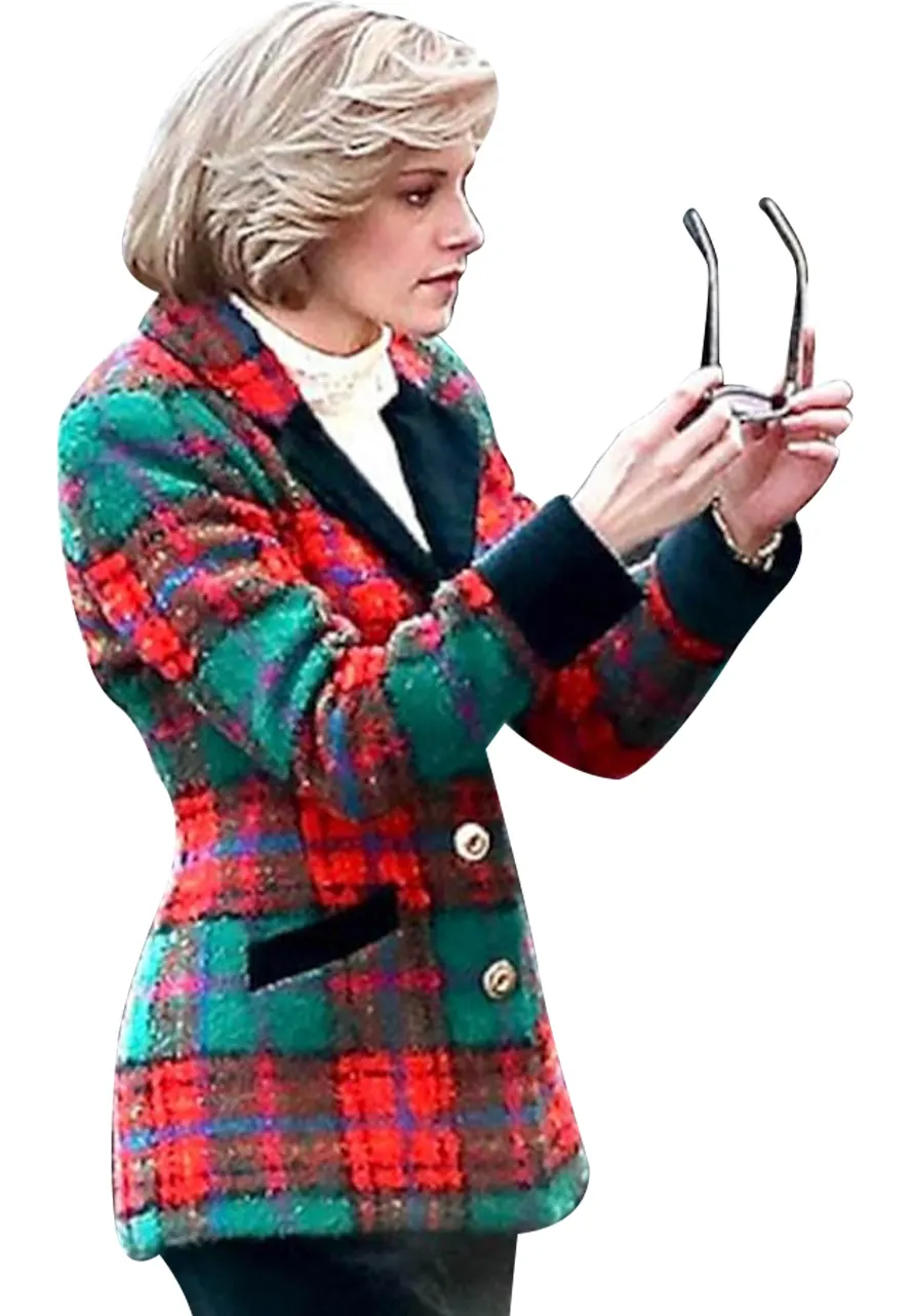 The spencer 2021 Diana plaid felt coat is perfect to add to your winter wardrobe. The princess diana coat is fabricated by premium quality wool fabric and lined with smooth viscose fabric. The green and orange plaid pattern will leave you with awesome looks. The spencer 2021 Diana Kristen Stewart plaid felt coat has great attributes like lapel style notch collar, buttoned closure, and two outside waist and two inside pockets are nice to storage your small possession. The princess diana trench coat is highly recommended for official and formal events that are functional and stylish. Now win the hearts through your style!