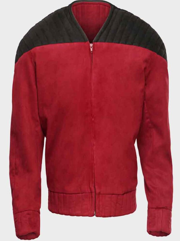 There is nothing more unique, simple, and cool than the star trek next-generation captain Picard red jacket that will surely give you simply wow looks. The premium quality cotton has been lined by soft viscose inner to make it wearable in all seasons. The charming maroon color makes it dynamic. The star trek next-generation Patrick Stewart jacket has been designed smartly by using features like a V neckline, smooth zippered closure, and elastic cuffs and hemline. Now make everyone a fan of your dressing wherever you go and increase your fandom on social media by wearing the star trek next-generation Patrick Stewart jacket.