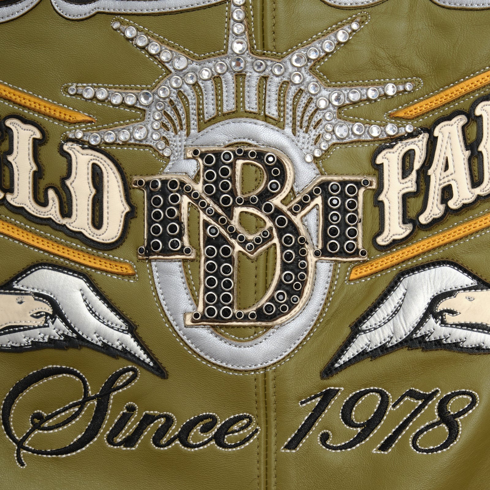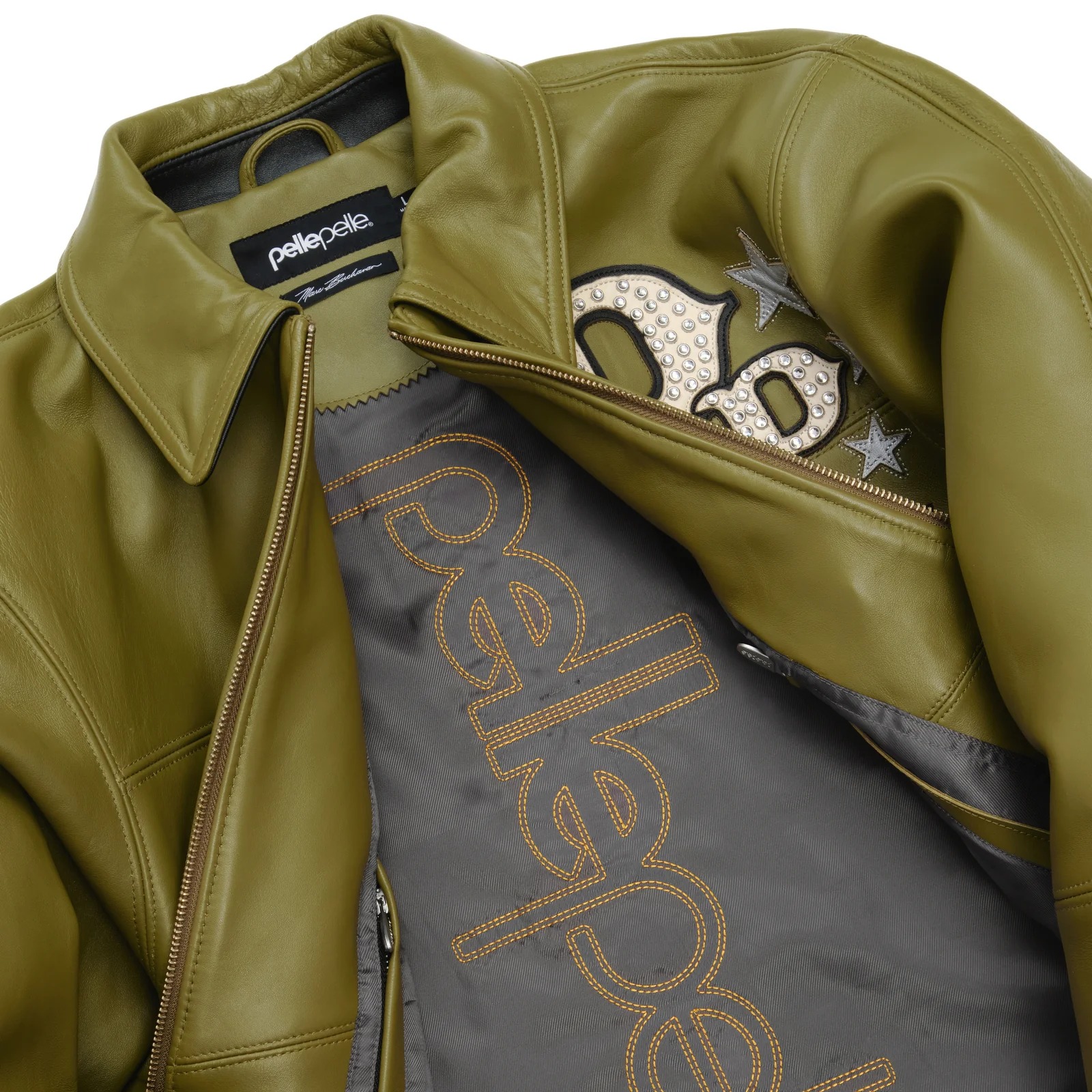 Stars and Stripes USA Olive Green Leather Pelle Pelle Jacket – Vintage Style, American Legacy
