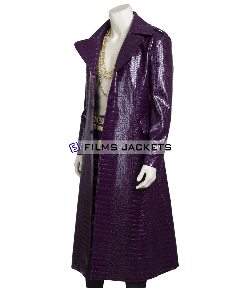 This leather coat is a necessity in case you are creating a Joker purple trench coat cosplay or simply need a statement outfit. It is also cool with Joker-related accessories, boots, and pants, so you can have the entire Suicide Squad outfit. It is a costume affair or a display of collections, a superhero-themed party, the Joker air is always present with you when you carry this coat.