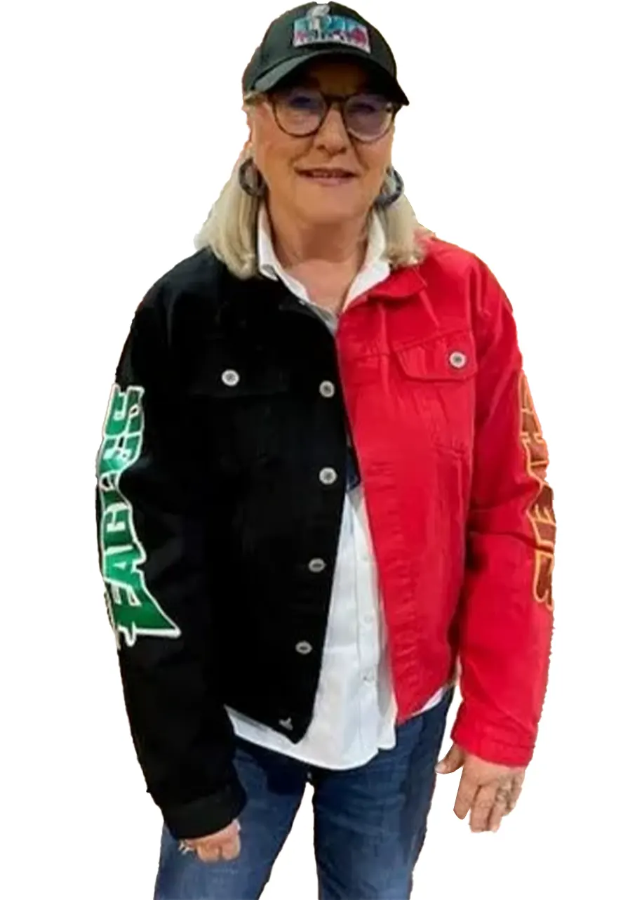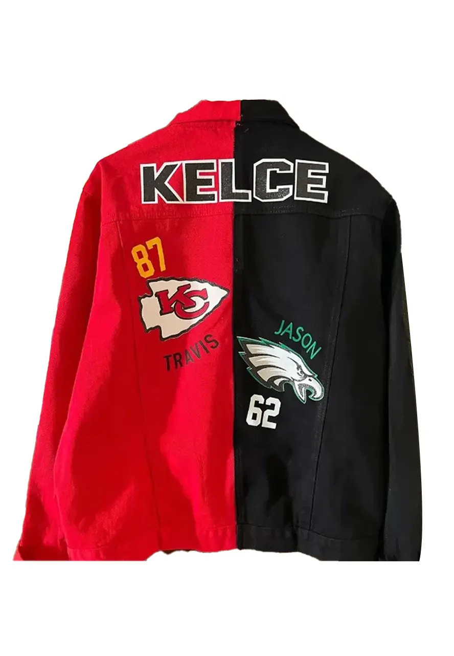 Now One Step Ahead in the Fashion World and Wear the Outfit That Will Capture Everyone’s Attention on You, Just You are required to Shop and Wear the Super Bowl Kelce Mom Jacket. This Exquisite Jacket Will Give You a New Change to Your Personality. The Dapper Jacket Has Been Fabricated by Premium-quality Denim to Make It Wearable in All Seasons, While Its Soft Viscose Inner Makes It Comfortable and Moisture-free. The Combination of Black and Red Colors Will Look Fantastic on You. The Kelce Mom Denim Jacket Has Been Tailored Modishly by Using All Smart Features Like a Shirt-style Collar, Buttoned Closure, Chest Flapped, and Side Waist Pockets, and Buttoned Cuffs to Make It More Functional. The Kelce Mom Jacket Will Let You Embrace the Timeless Elegance and Charm.