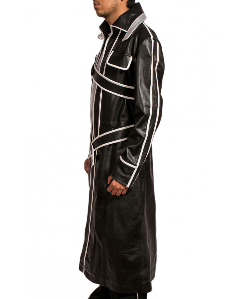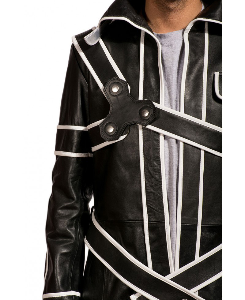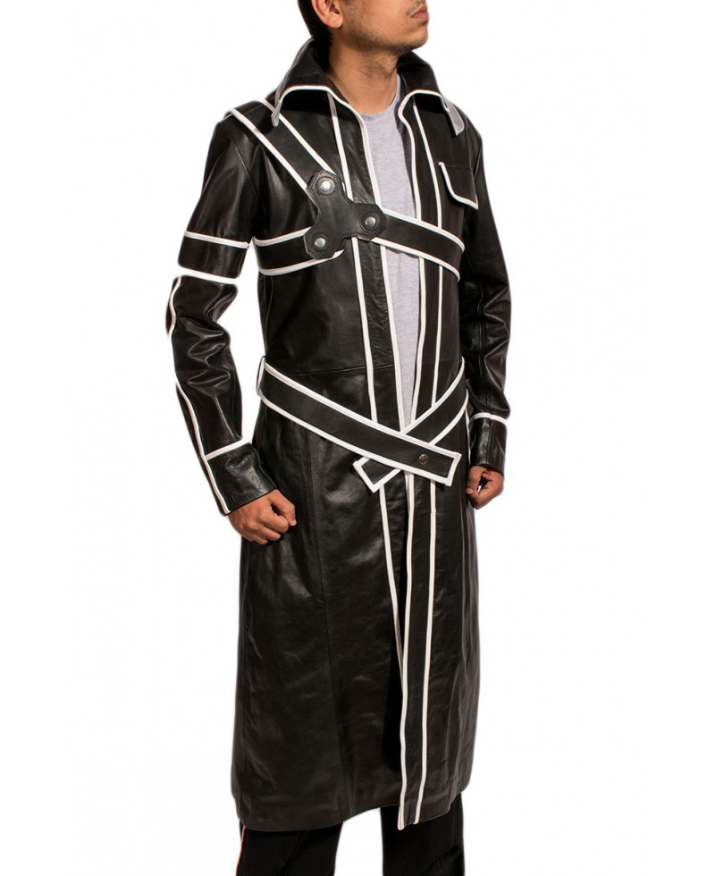 The “Sword Art Online” is an amazing film of 2016 based upon the Japanese Novel. The Kirito wore Kirito Jacket in the same film and grasped the attention of the viewers. He looked impressive and an artistic person who is well aware of the sword art. The real cow hide leather or faux leather is used to make the outer shell of the Kirito Jacket which is of very high quality. The shirt collar style is given and the durable quilted viscose lining is also a part of this outerwear. The quilted viscose lining is added for your comfort. The long size Kirito Coat is the awesome combination of black and white color. The whole coat is in black shade whereas the white stripes have given miraculous impression to it. Only one outside pocket is given in Sword Art Online Jacket with two inside pockets are for your ease. The shirt collar is very attractive and the belted closure style is given in it. The open hem cuffs are the additional eye catching feature of the Sword Art Online Kirito Jacket.