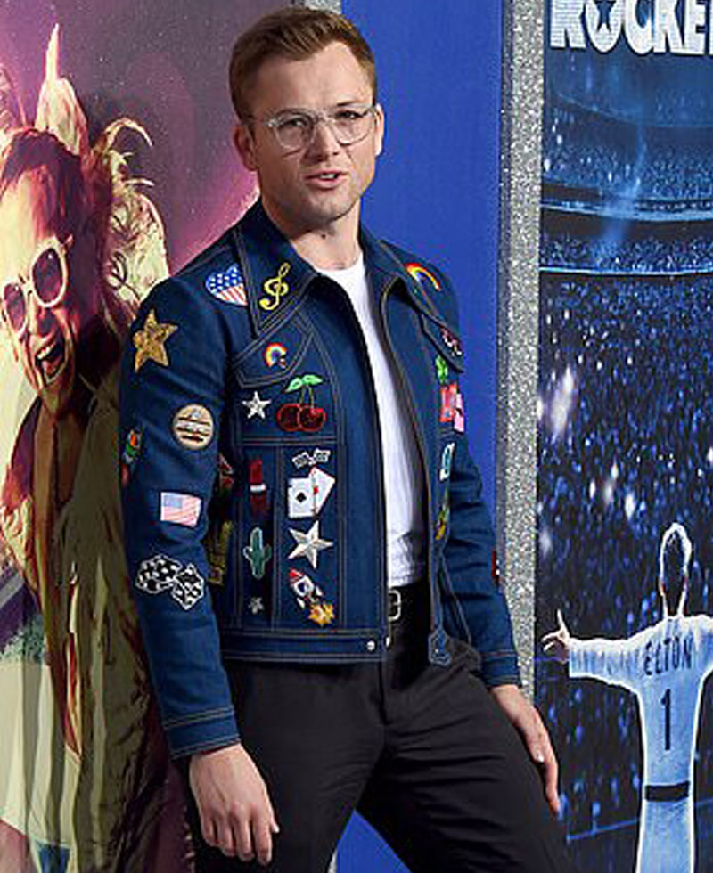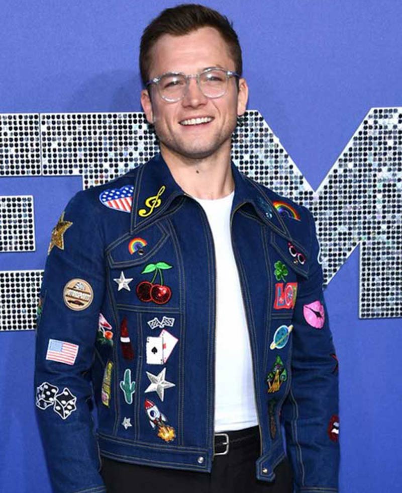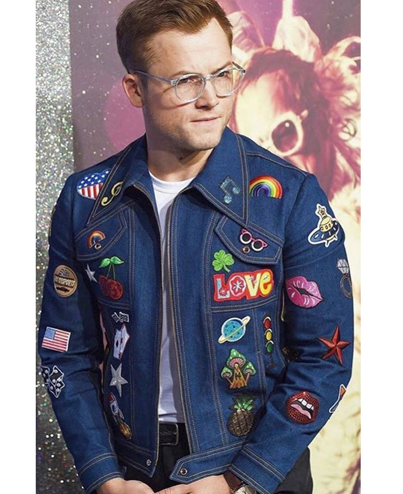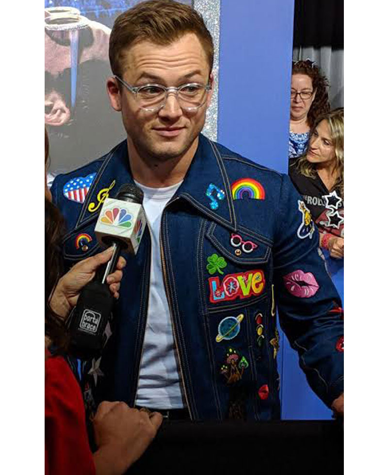 Taron Egerton Rocketman Film Elton John Denim Jacket with All Patches