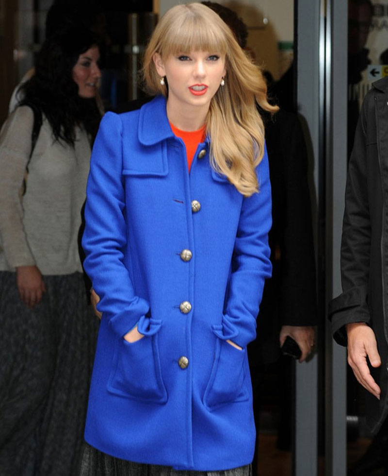 What to say about this lovely coat? Thanks to taylor swift who introduced this apparel and looked so desirable that now almost every other girl want it. Truth to be told, the apparel is a spectacular apparel that will give you a desirable appearance. The Taylor Swift blue coat is made from premium quality woolen material. On the inside of this apparel, there is a viscose lining that will keep you warm and comfortable. The apparel looks so classy in blue color. Taylor Swift blue wool coat has two front side waist pockets where you can secure stuff. It has a lapel style collar. The front buttoned closure fits in perfectly with the style of this coat. There are open hem cuffs on full length sleeves. This coat is the exact replica of the original one.