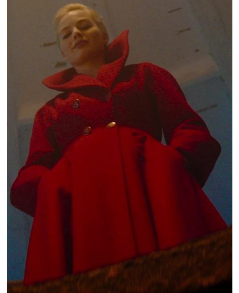 Margot Robbie Terminal Movie Annie Wool Red Coat