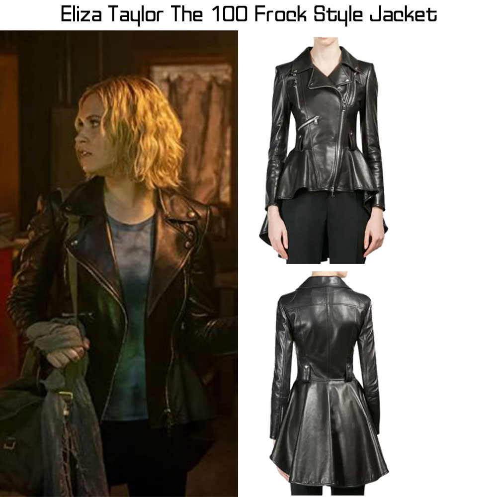 The 100 is an American famous SciFi web television drama series where this stylish frock style jacket was worn by none other than the famous actress Eliza Taylor who portrayed the character of Clarke Griffon. The outer side of this jacket is manufactured with premium quality of genuine leather material. On the internal side of this jacket is a lining of smooth and soft viscose that keeps you warm and comfortable all the time. This Clarke Griffon leather jacket comes in black color. There is a ykk branded zipper on the front side of this jacket for the closure. The notch lapel style collar on this jacket makes it more desirable to wear. The 100 season 07 Eliza Taylor leather jacket comes with zipper style cuffs on full-length style sleeves. It comes with front multiple zipper pockets where you can secure stuff. The leather jacket has a frock style which makes it more attractive.