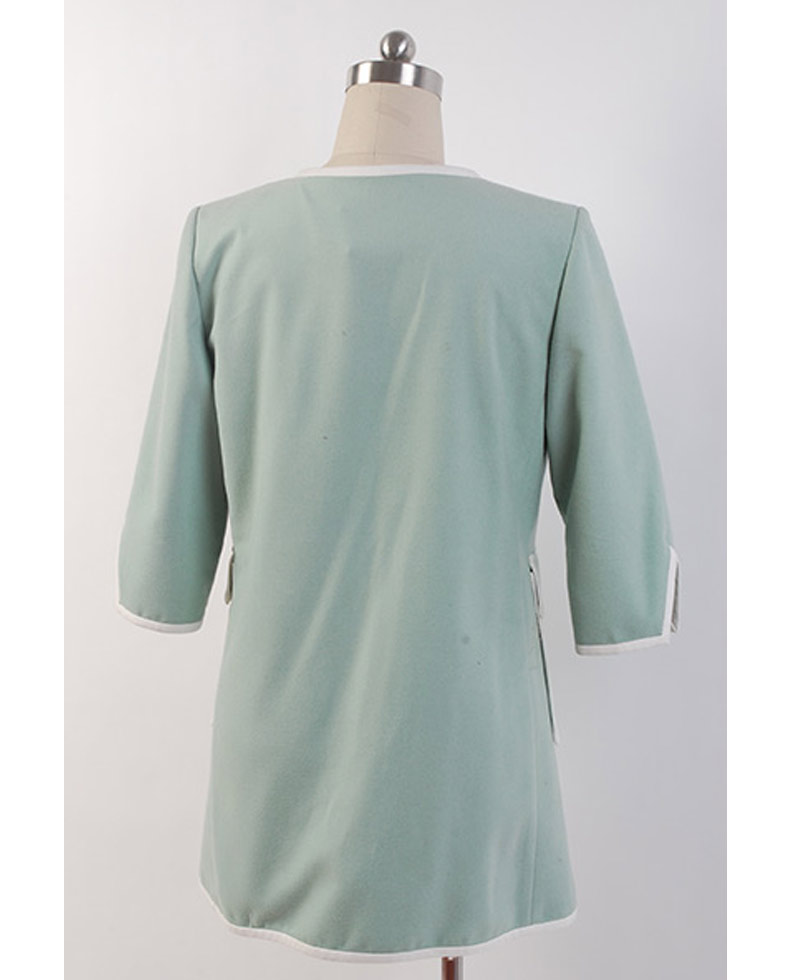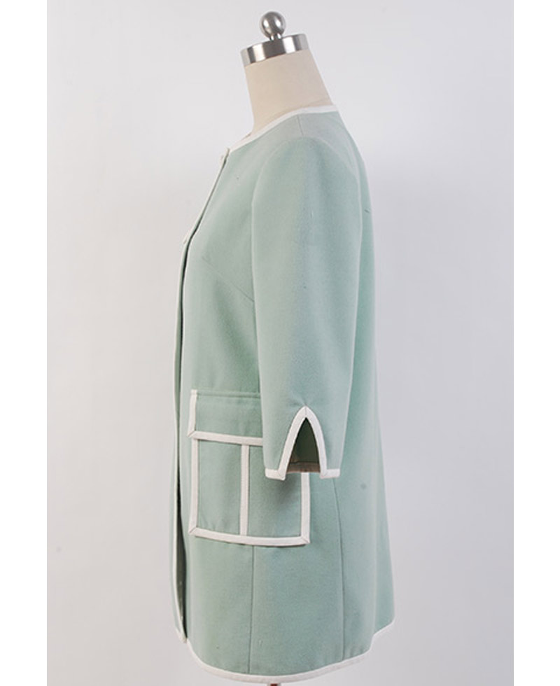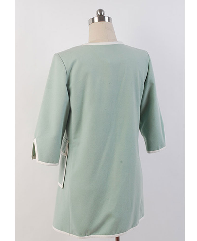 Gwen Stacy Coat is an attractive choice for an attractive personality. This amazing jacket is made from pure cotton. The very fine material is used in the Gwen Stacy Green Jacket. It has the unique three quarter cuffs cut in A shape and to make it more beautiful, white pining is given. Stacy green coat has the front button closure along with large two white piping flap pockets. The fantastic green color that makes you fantastically pretty . Collarless design styled with white piping.