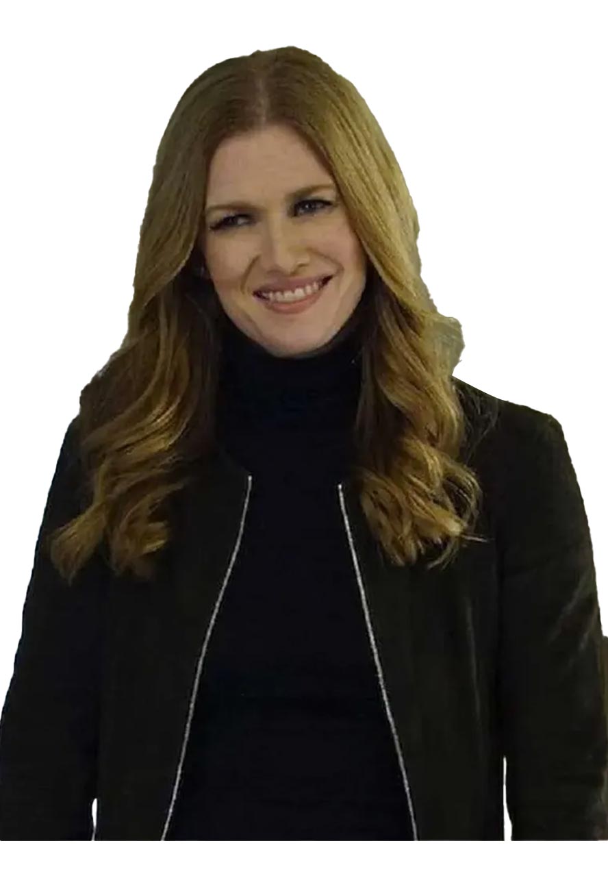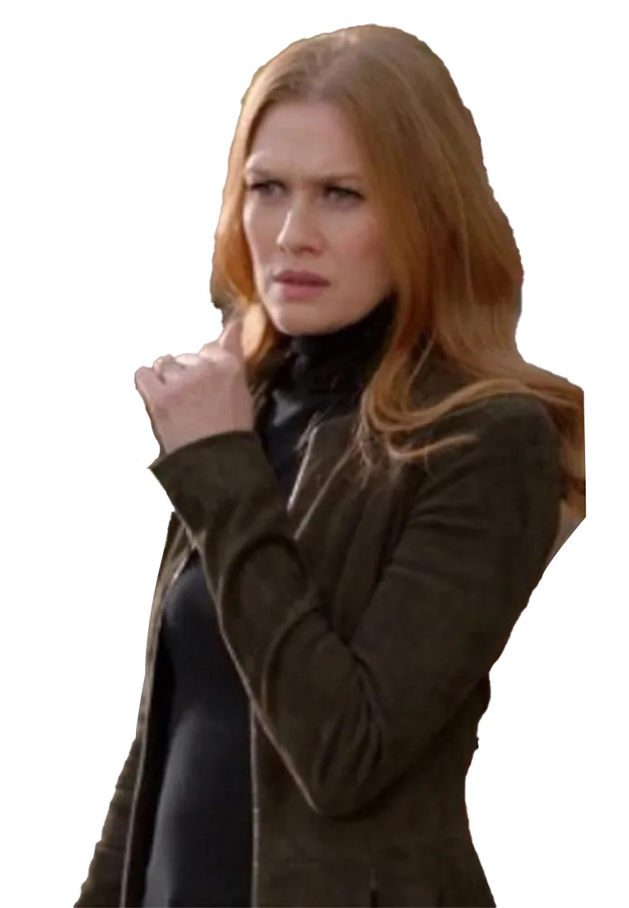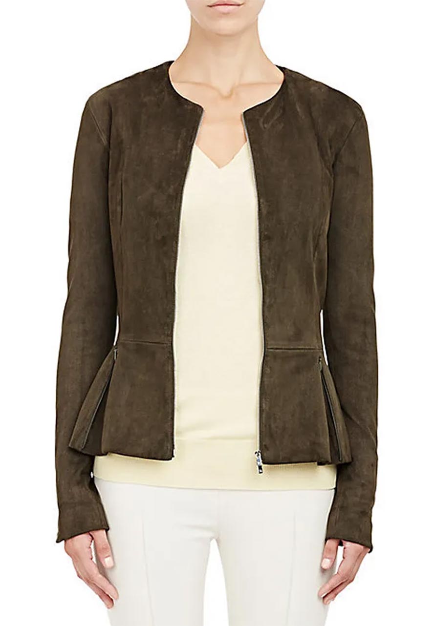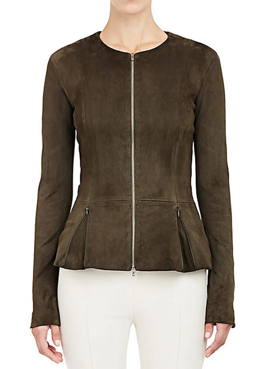 The Catch Mireille Enos Peplum Suede Leather Jacket