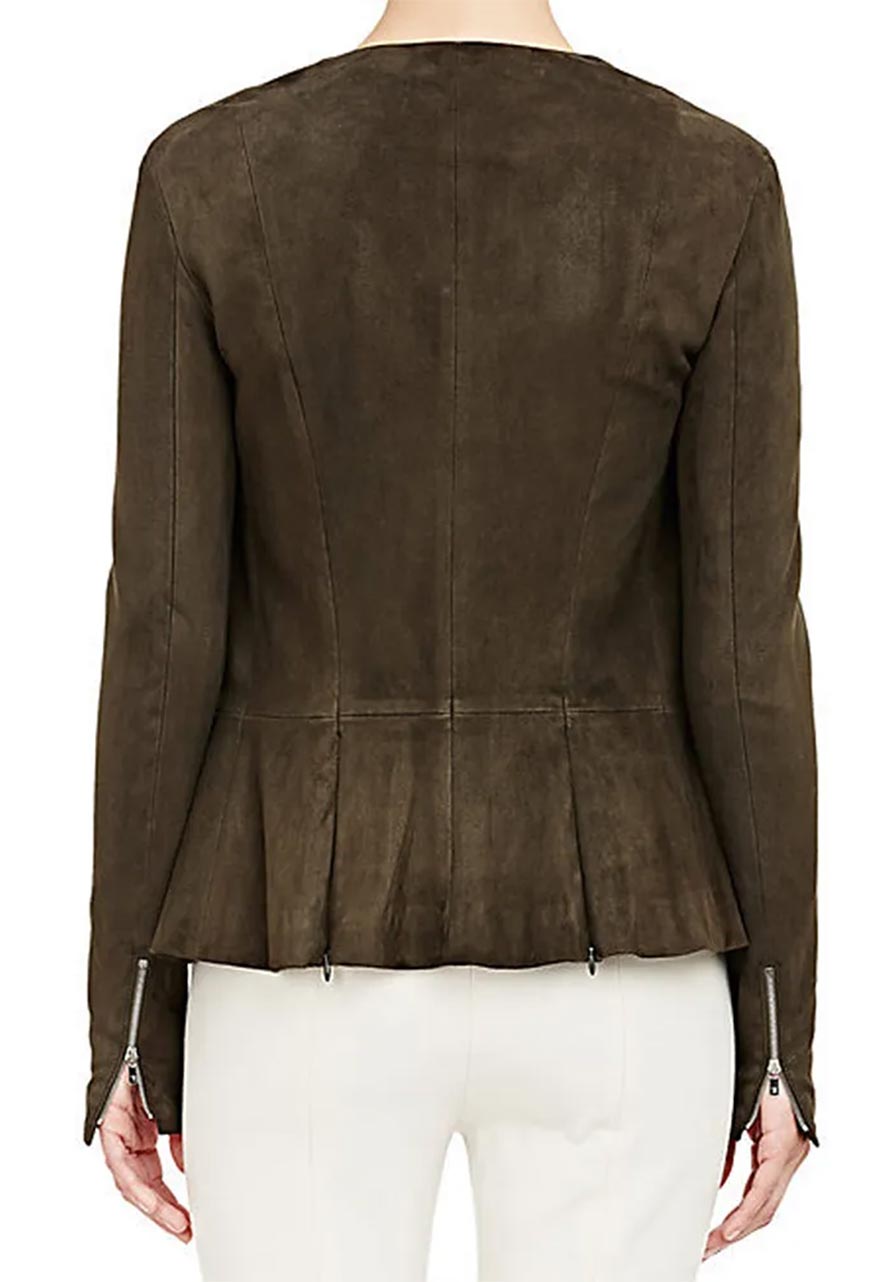 Wearing the Catch Mireille Enos Peplum Jacket, You Can Effortlessly Beautify Your and Leave You With Gorgeous and Elegant Appearance Wherever Your Journey Take You. The Premium-quality Suede Leather Makes It Warm and Luxuriant, While Its Soft Viscose Inner Makes It Comfortable and Moisture-Free. The Charming Green Color Will Glamorize Your Looks. The Mireille Enos Peplum Jacket Has Been Designed Beautifully by Using Smart Features Like a Round Neckline, Smooth Zippered Closure, Two Side Waist, and Inner Pockets. The Suede Leather Jacket is an Outstanding Outfit That Will define your Unique Style and Let You Enjoy Highly Appreciated Compliments for Your Dressing Style.