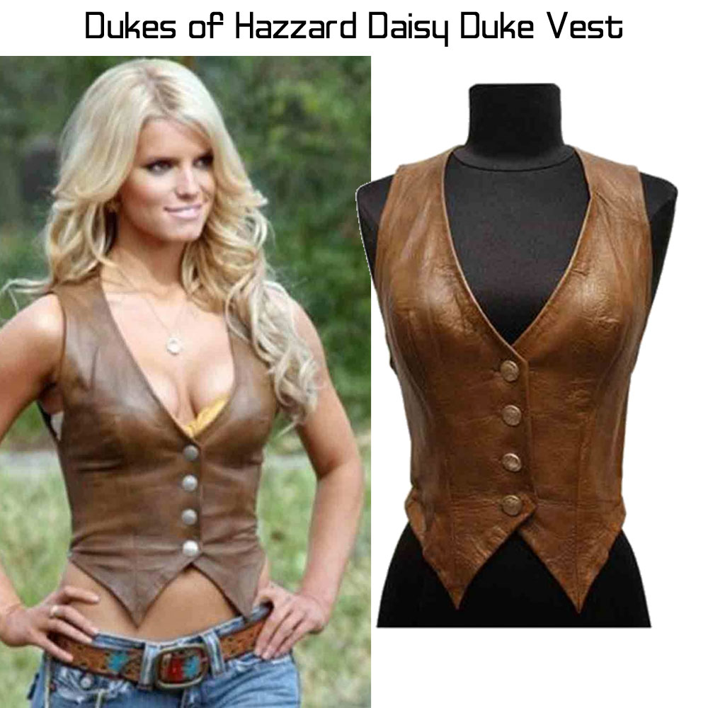 daisy duke leather vest is manufactured from high quality genuine leather material. This leather vest is very comfortable and will also keep your chest warm. This vest will give you a very stylish and a trendy look. You can wear this jacket casually anywhere. You will love the material and soft structure of this leather jacket. the dukes of hazzard catherine bach vest has front v shaped neck style. This leather vest has front three button closure that fits in perfectly with the style of this vest. This vest is available in an attractive and an appealing brown color. Its color will make you fall for it. This leather vest is available here at a very reasonable price. Order this leather vest now without wasting any further time. No doubt you will love this leather vest.