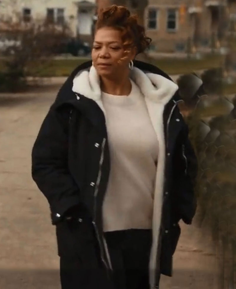 The Robyn Mccall coat was worn in the American famous action thriller movie called The Equalizer by the gorgeous actress Queen Latifah when she was portraying the character of Robyn Mccall. The external side of this coat is fabricated with the cotton fabric of premium quality. The coat has fine quality stitching and detailed work that makes it more durable to wear. The inner side of this Robyn Mccall coat is stitched with a soft faux shearling lining. The Robyn Mccall shearling coat has a hooded-style collar. The coat has a ykk branded zipper attached to its front side for closure. The equalizer Queen Latifah black shearling coat has open hem style cuffs on full length style sleeves. The stylish coat comes with two front waist pockets as well where you can secure stuff. Moreover, the Robyn Mccall shearling coat has snap buttons on its front side as well for the fastening.Â