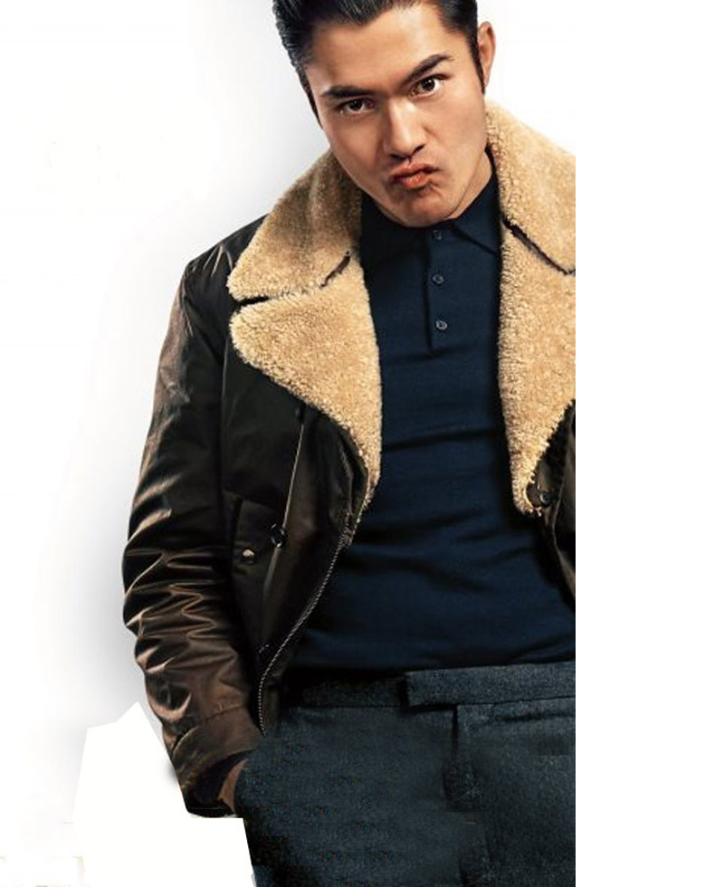 In the American crime action movie titled as the gentlemen, the actor Henry Golding wore this brown jacket as the character of dry eye. Dry eye leather jacket is made from top quality genuine leather material and has soft and comfortable viscose lining stitched on its inner side. It comes in brown eye-catching color. It will also keep you warm in cold weather. The gentlemen Henry Golding brown jacket has front ykk branded zipper conclusion that makes it more classy. It comes with open hem style cuffs on full length style sleeves. The fur shearling-lined style collar gives this leather jacket a remarkable appearance. It has two front side waist pockets and two inside pockets where you can secure your stuff.