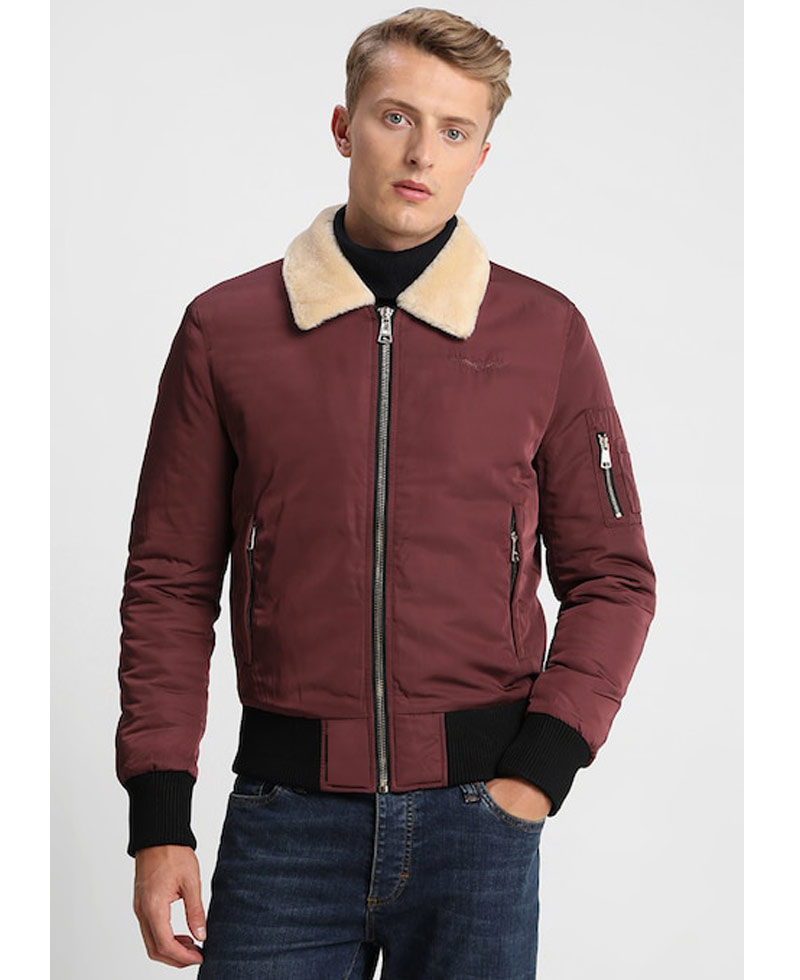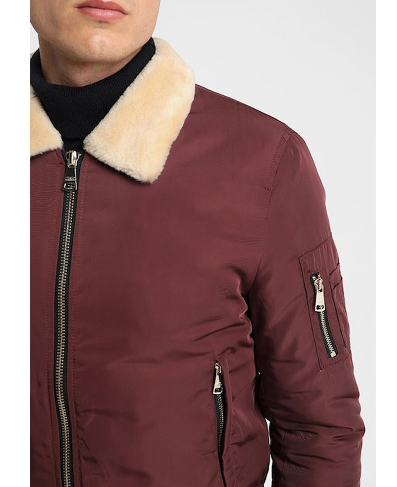 The Hook Up Plan Jules Bomber Burgundy Jacket with Fur Collar