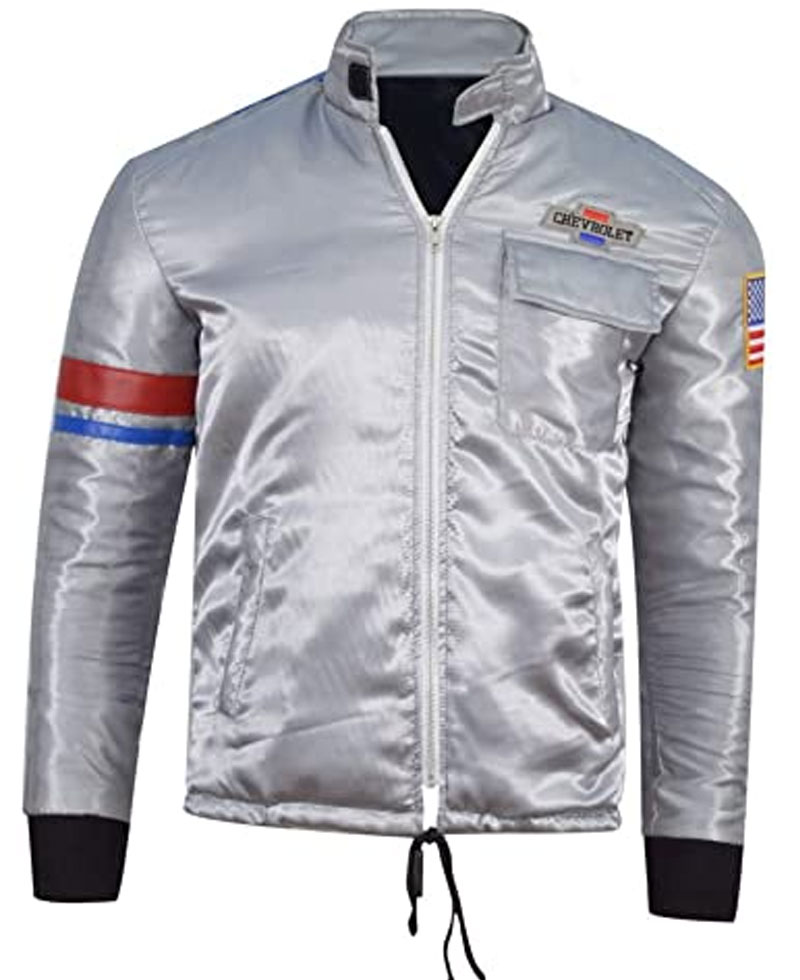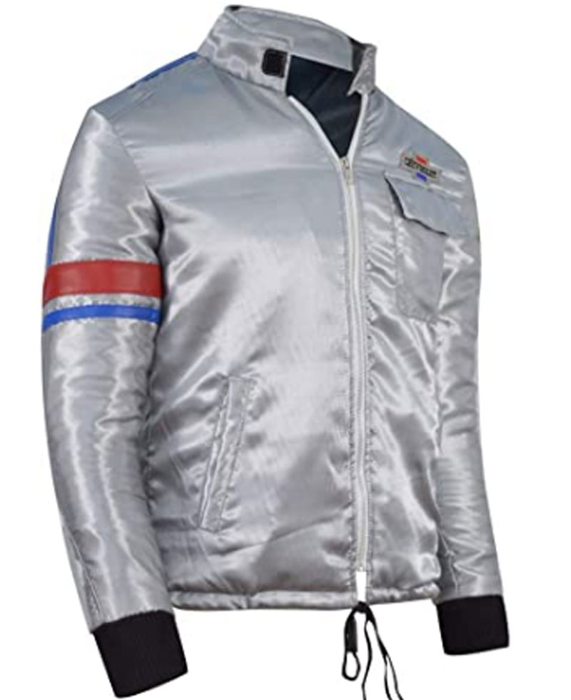 The warriors moonrunners jacket worn in the movie the warriors gives you a dazzling look. Satin material is used in the formation of this jacket which is of high and durable quality. The jacket contains inside viscose lining as well. The front of this bomber jacket has stand-up style collar with stylish front zipping closure. The jacket comes with rib knitted style cuffs on full-length style sleeves leaving an appealing impression. The moonrunners logo at the back adds more charm to the beauty of this warriors silver jacket. There are red and blue colored stripes on the sleeve and on the shoulder. The one flapped chest pocket and two pockets on the internal of this jacket are to provide you space so you can secure stuff in them.
