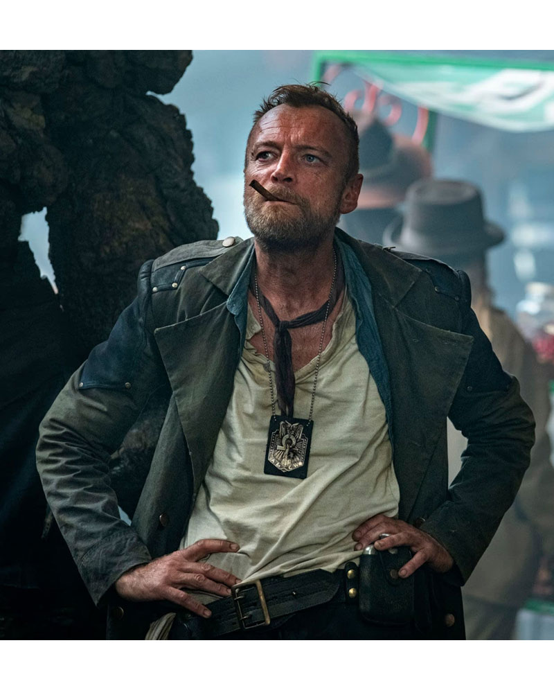 In the British web television drama series called The watch, the actor Richard Dormer wore this classy and stylish coat when he was portraying the character of Sam Vimes. The external side of this coat is fabricated with the cotton fabric of premium quality. The inner side of this Captain Sam Vimes coat is lined with smooth and soft viscose lining that keeps you warm and comfortable all the tiem. The stylish and appealing green color of this coat makes it desirable to wear. Richard Dormer the Watch coat has buttons on its front side for the closure. The coat has a stylish lapel style collar. There are two front pockets on this Richard Dormer The Watch coat where you can secure stuff. The coat comes with buttoned style cuffs on long length sleeves.
