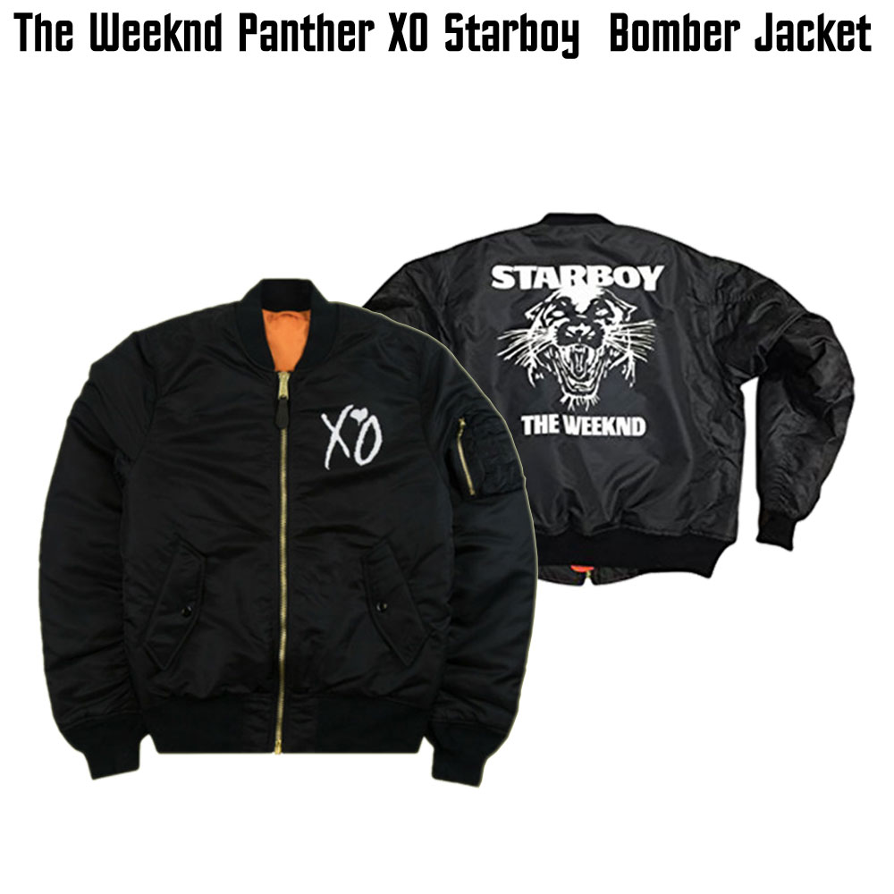 The classy-looking bomber jacket starboy is designed for men. The exterior of this bomber jacket is fabricated by using rich quality satin material. On the internal side of this bomber jacket is a lining of smooth and soft viscose attached that keeps you warm and comfortable all the time. The fine quality stitching makes this jacket durable to wear. The bomber jacket starboy has its inner side stitched with smooth and soft viscose lining. There is a ykk branded zipper attached to the front side of this jacket for the closure. The Weeknd Starboy Panther XO Bomber Jacket has rib-knitted style cuffs on full length style sleeves. There is a rib-knitted hemline on this jacket that gives the bottom a fitted look. The Weeknd Starboy Panther XO Bomber Jacket comes with two front waist pockets. There is a rib-knitted collar on this jacket as well.
