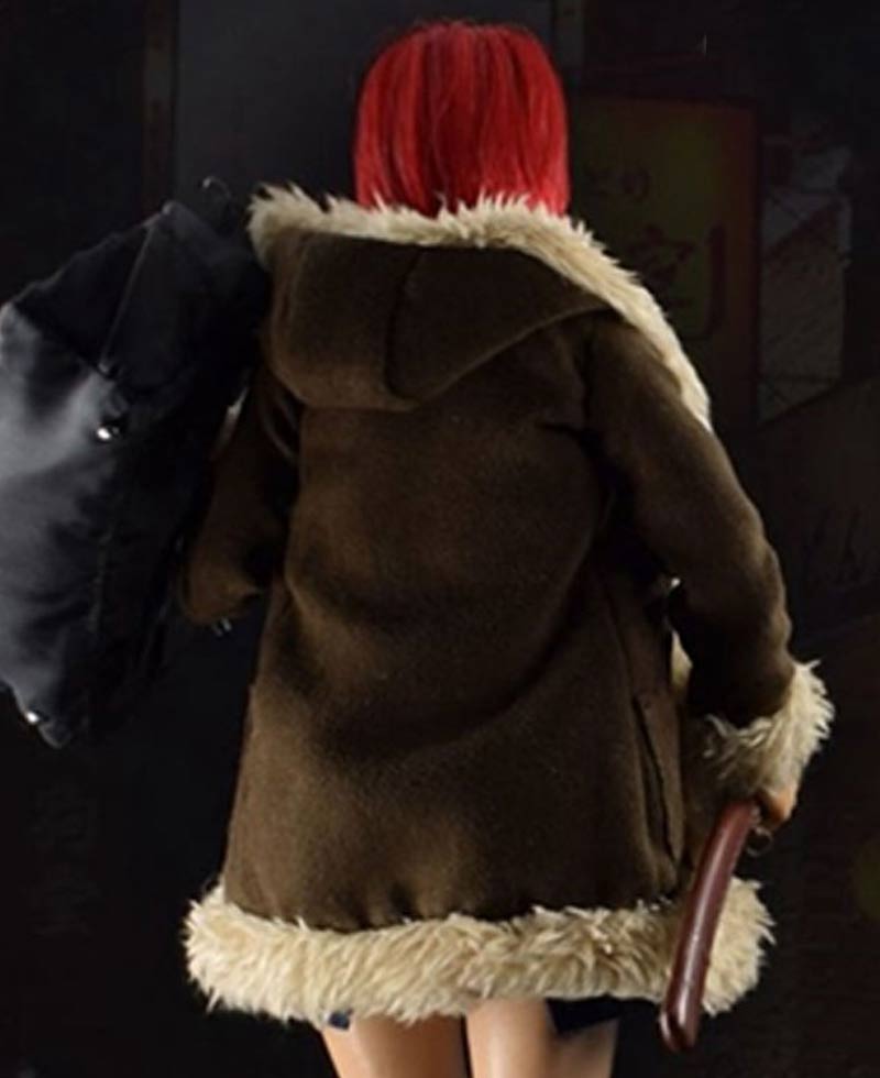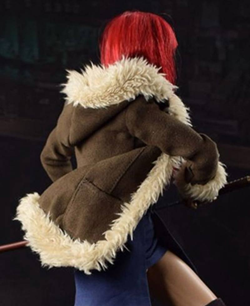 yukio leather coat is manufactured from high and endurable quality of cotton and faux fur material. The material quality is long lasting. This coat has inner soft viscose lining that keeps this coat comfortable to carry all day long. This coat will guard you against cold weather and will no doubt keep you warm and cosy. the wolverine rila fukushima leather coat has front open style. This wolverine yukio coat has full length style sleeves with faux shearling lined open hem style cuffs. This coat worn by rila fukushima has two side waist pockets in which you can keep your stuff. There is a hoodie attached to this yukio coat. This coat comes in brown color. Order this garb right now without wasting any more time. We assure you that you will love this coat.