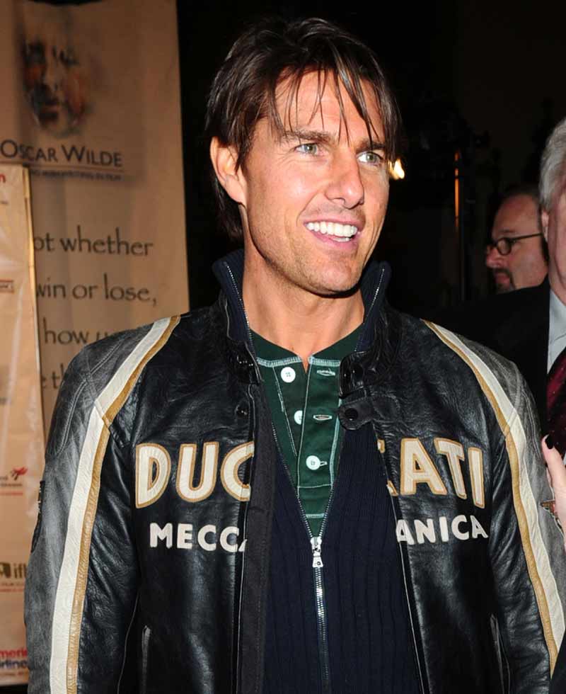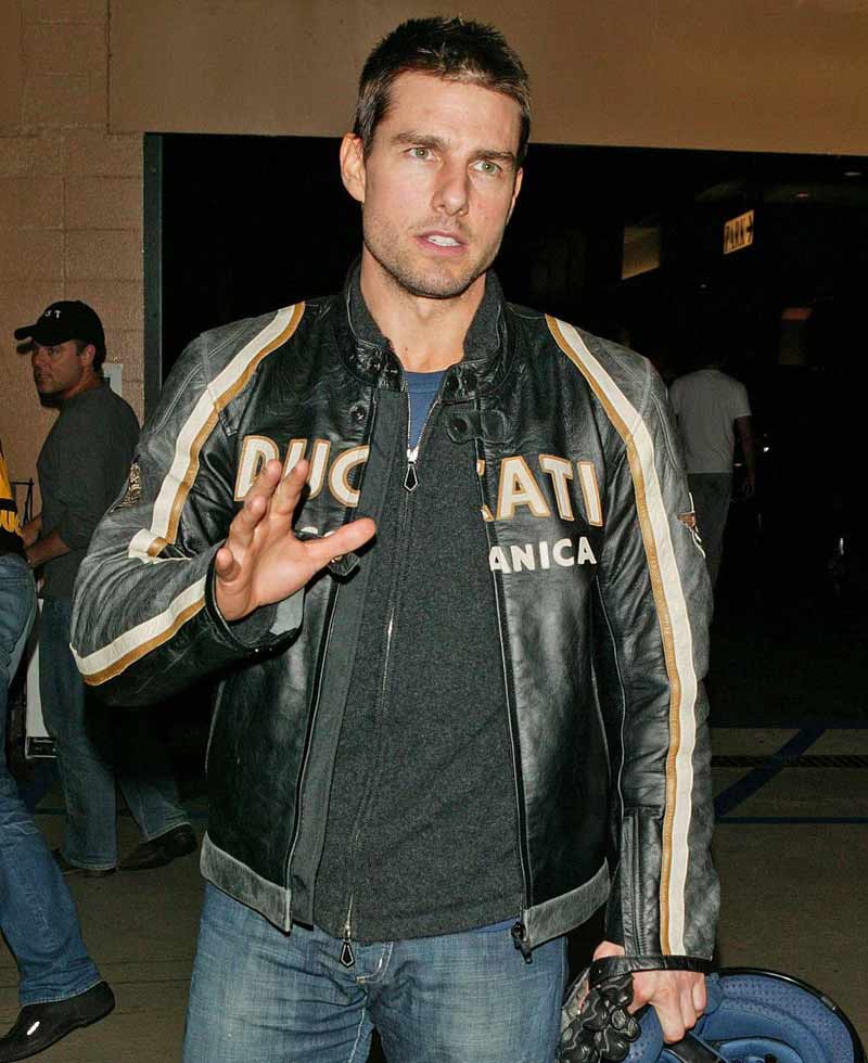 Tom Cruise Ducati Meccanica Biker Black Leather Jacket