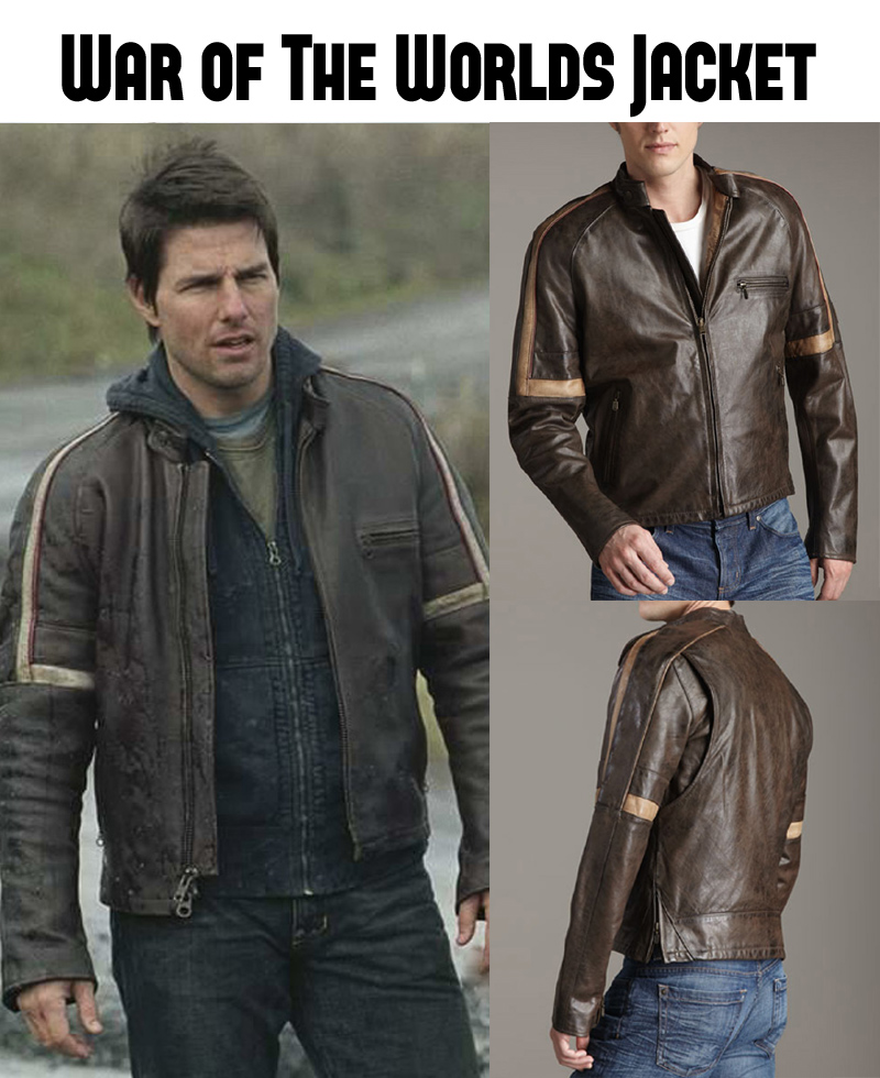 The Tom Cruise War Of The Worlds Jacket is a fashion symbol. The idea of this super appealing outerwear is taken from an American movie named as “War Of The Worlds”. The hot favorite star Steven Spielberg wore Tom Cruise War Of The Worlds Jacket and gave a tremendous look to the fashion lovers. The outer shell of the jacket is made from the genuine leather. The shade is elegant brown which is liked by most sophisticated personalities. One zipper pocket is present on the chest whereas two side waist zipper pockets are also present in War Of The Worlds Jacket. The branded YKK zipper closure is given for easy wearing. The snap tab collar forms your eye-catching appearance. The stripes are added on both sleeves from arms. The open hem cuffs of War Of The Worlds Jacket are creating slimmer look. It is a perfect selection for occasion where you want to impress everyone by your remarkable beauty.