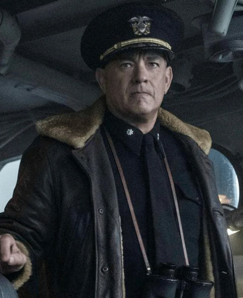 The legendary American veteran actor tom hanks wore this shearling leather jacket when he was portraying the character of commander Ernest in the movie called greyhound. The commander Ernest Krause’s leather jacket is fabricated from genuine leather material of premium quality. It has an internal lining of soft and comfortable faux shearling that will keep you warm and cozy all the time. It comes in black color. Tom hanks greyhound leather jacket has front buttoned and zipped style closure that fits in perfectly with the style of this jacket. The apparel comes with open hem style cuffs on full length style sleeves. It has a shearling-lined collar. It comes with two front side waist pockets and two inside pockets where you can secure stuff.