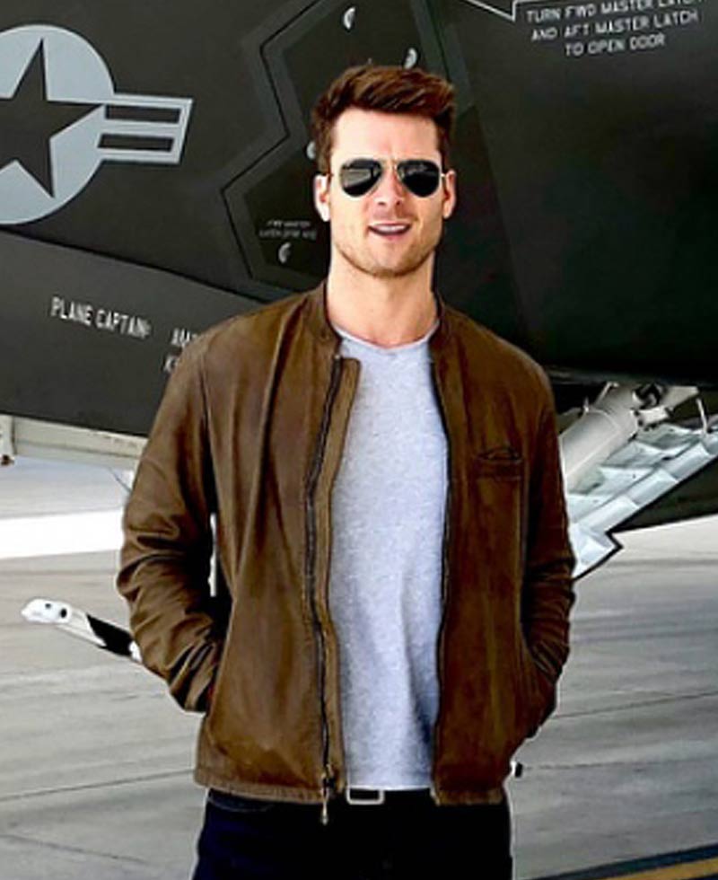 Top gun maverick Glenn Powell leather jacket was worn in an upcoming naval american movie titled as “top gun maverick” by the actor Glenn Powell. Finest genuine leather material is used in the manufacturing of this jacket. It has an internal soft and comfortable viscose lining. It gives you a perfect classy look and keeps you warm in chilly climate. The brown color makes your appearance more impressive. Top gun 2 Glenn Powell brown leather jacket has a front trendy zipper for the closure. To have a stylish look, the jacket has long length sleeves and open hem cuffs. No doubt a collar completes the looks of a jacket but this jacket has a collarless style which trusts me looks perfect. There are two front side waist pockets for keeping stuff secure.