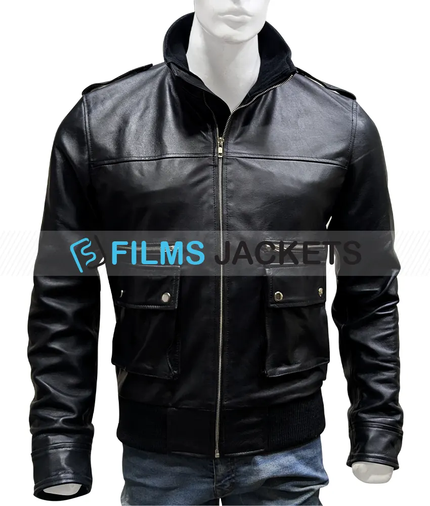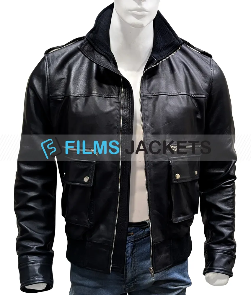 Alexander Skarsgard True Blood Dark Black Bomber Leather Jacket