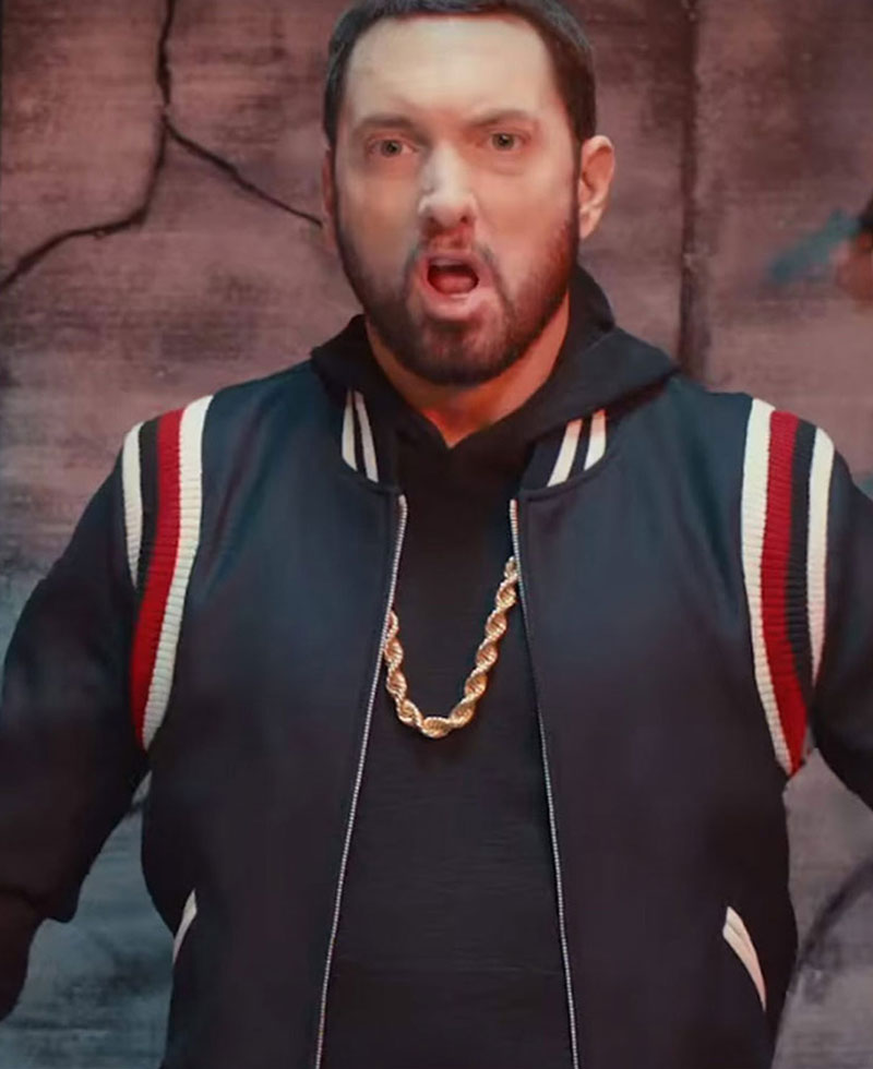 The idea of this varsity jacket is taken from the music video of Godzilla where the famous and brillaint American rapper Eminem wore this varsity jacket. The Eminem Godzilla jacket is fabricated with premium and rich quality of cotton material. The internal side of this bomber jacket is lined with soft and comfy viscose that indeed will keep you warm and cozy against cold weather. It comes in black rich color. The jacket has fine quality stitching. Godzilla Juice WRLD bomber jacket has a rib-knitted style collar. It comes with full length style sleeves on rib knitted style cuffs. The varsity jacket looks desirable with the front ykk branded zipper for the closure. The rib-knitted hemline makes the apparel more appealing. It has two front side waist pockets where you can secure stuff.
