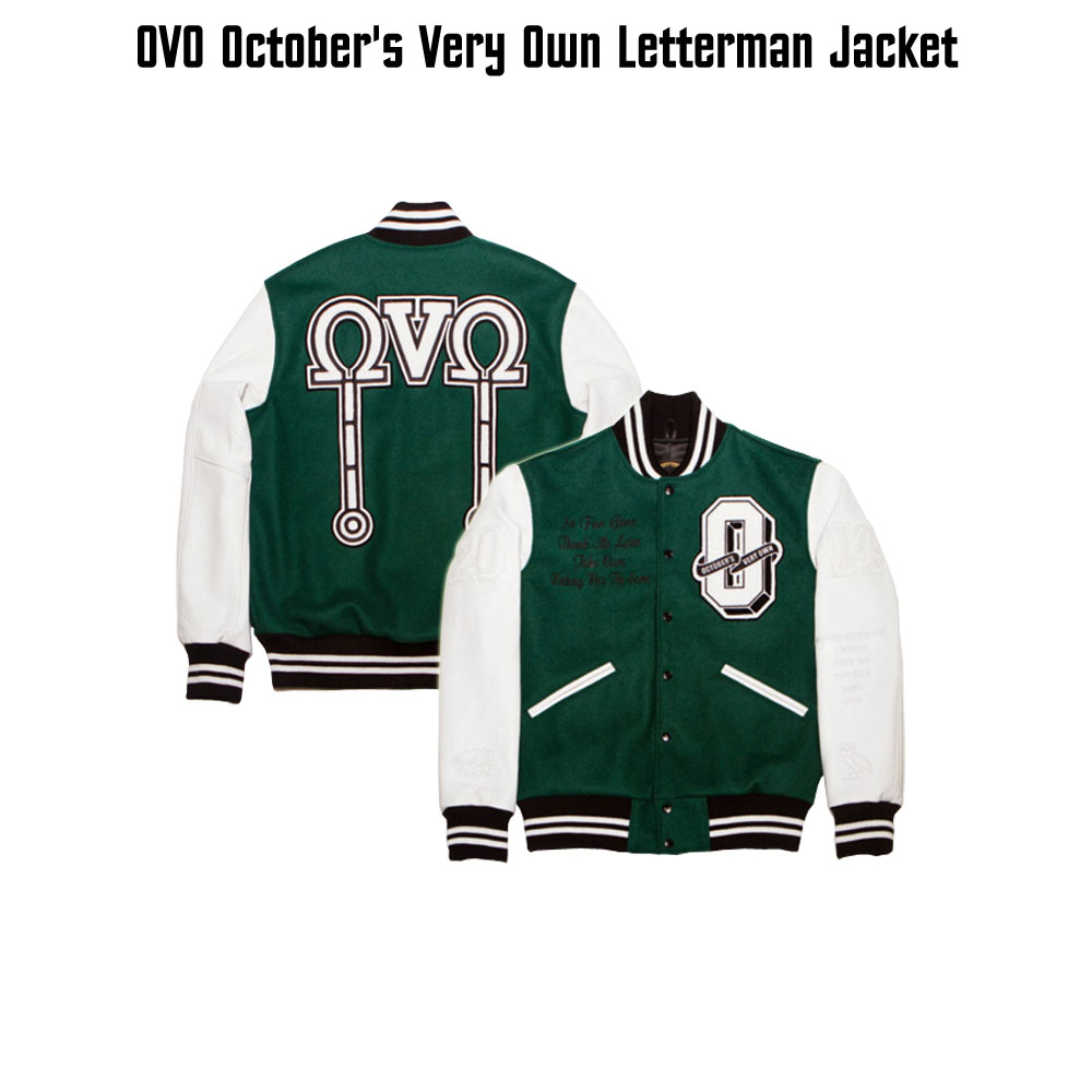 October’s Very Own Green and White Letterman Jacket