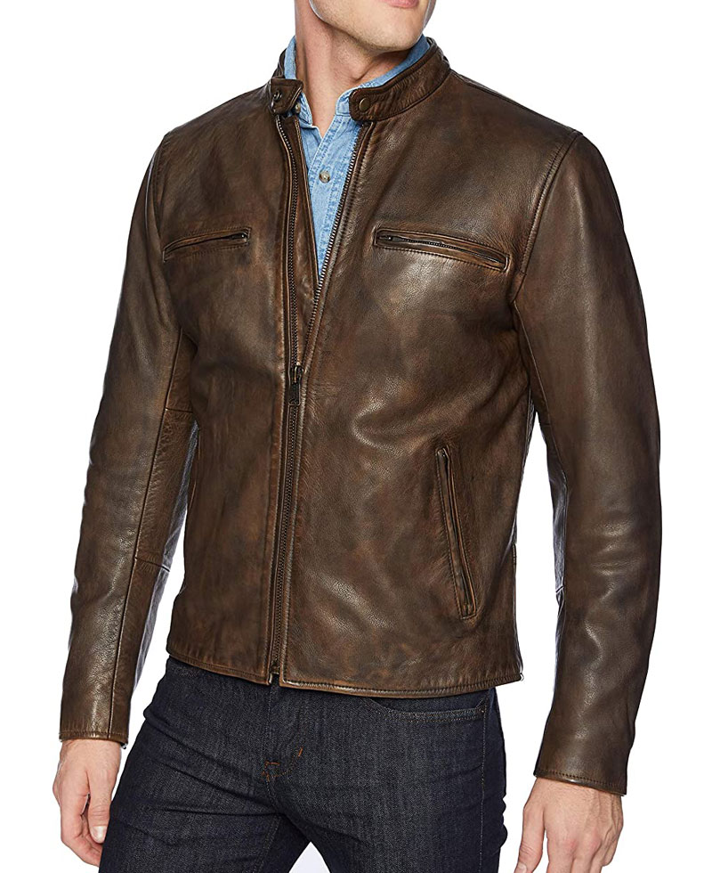 The dusty brown colored leather stylish jacket is something you would definitely want to try this season. The classy stylish jacket is made by using the top quality of genuine leather material. The lucky leather jacket comes in a mesmerizing and appealing brown color. On the internal side of this stylish lucky leather jacket is a lining of smooth and soft viscose that keeps you warm and comfortable all the time. The jacket has a ykk branded zipper attached to its front side for the closure. The vintage look on this biker leather jacket makes it more appealing to wear. The lucky leather jacket comes with open hem style cuffs on full-length style sleeves. The jacket has an appealing snap tab style collar. The jacket has two front zipper chest pockets and two zipper waist pockets for keeping stuff.