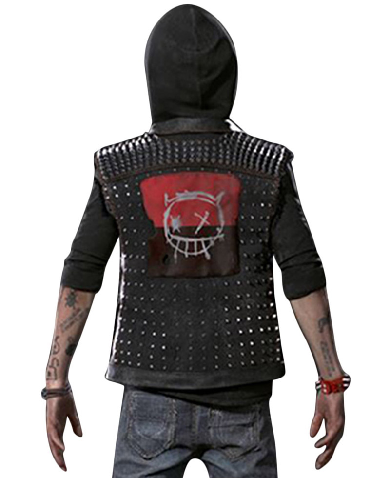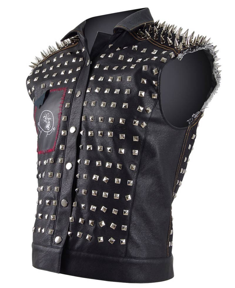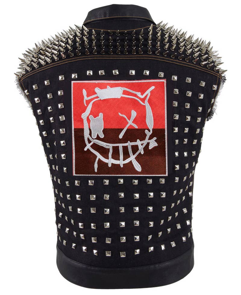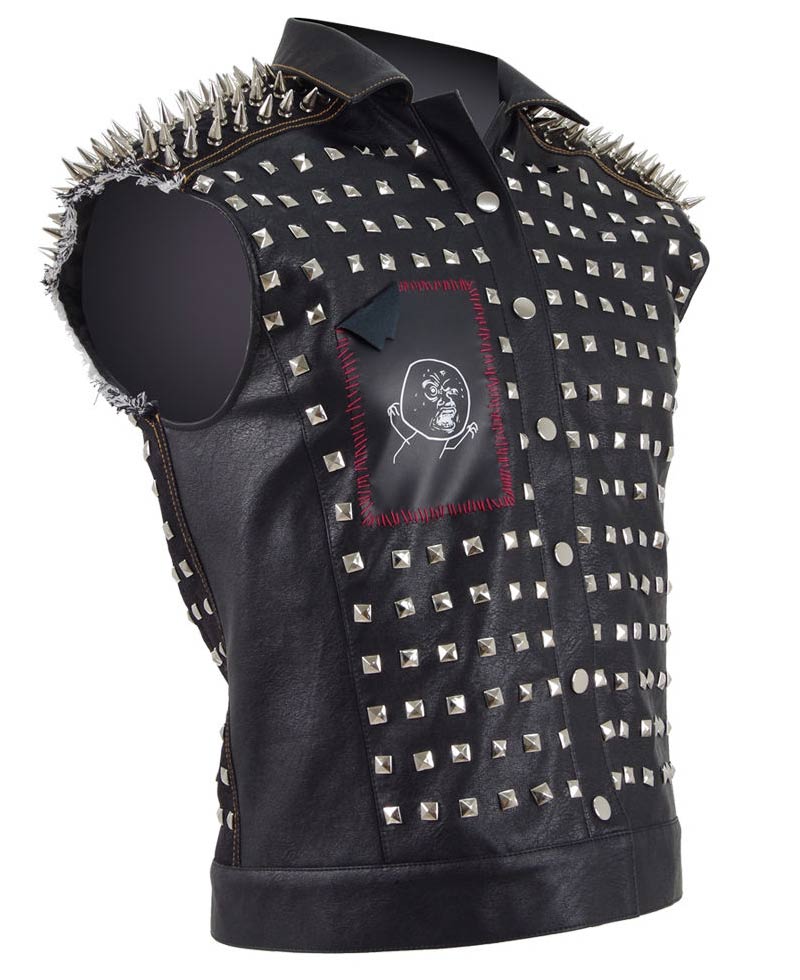 Watch Dogs 2 Game Wrench Studded Leather Jacket with Patches