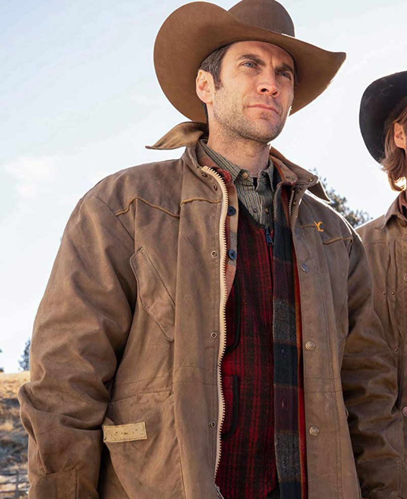 Jamie Dutton jacket was worn in the famous American television drama series titled as Yellowstone in which Wes Bentley wore this jacket. The genuine leather material of high quality is used in the manufacturing of this attire. The jacket has an internal lining of soft Viscose. It has a brown color. The Yellowstone Wes Bentley leather jacket has front snap tab button style closing along with branded zipper. The shirt collar looks very attractive. It has buttons on the cuffs with full-length style sleeves. Two slanted flap chest pockets along with two front waist pockets enhance the beauty of this apparel and also gives you access to secure your stuff. The features make the jacket very stylish and pleasurable to carry.