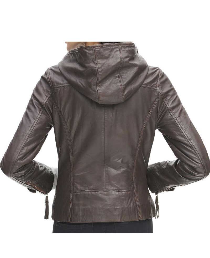 womens brown leather jacket with hood is manufactured from a reliable quality of genuine leather material. The stuff we use in the production of this jacket is good, lasting and of high quality. This jacket will shield you against cold climate and will make you feel warm and cosy. This jacket will give you a very appealing sight. The inner soft viscose lining makes this outfit very comfortable that you can carry it all day long. womens brown leather jacket with hood has front ykk branded zipper closure that fits in perfectly with the style of this jacket. This jacket has notch style collar. This jacket has full length sleeves with zippered cuffs. There are two zippered hand pockets along with one zippered hand pocket in which you can secure your stuff. This is an attached hood with this jacket. You can get this stylish and casual wear in brown color. Do order your piece right now without wasting further time. You would not regret once after buying this jacket.