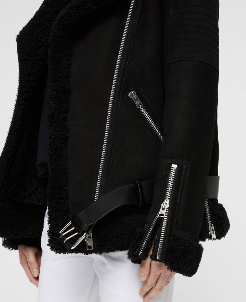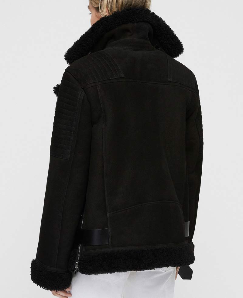 black suede shearling jacket with fur collar is manufactured from high and good quality of suede leather material. The long-lasting material is used in the formation and is assured. This jacket is very comfortable as it contains an inner soft shearling lining. This jacket will guard you against cold climate and will make you feel warm and cozy.garrix shearling jacket has full-length sleeves with zipper style cuffs. This leather jacket has front ykk branded zipper style closure that fits in perfectly with the style of this jacket. This jacket has zipper pockets. This jacket has fur style collar. You will admire each detailing on this jacket. You can carry this jacket informally or can also carry this for an event. This jacket is available here in black color. Order this jacket right now and get your hands on it.