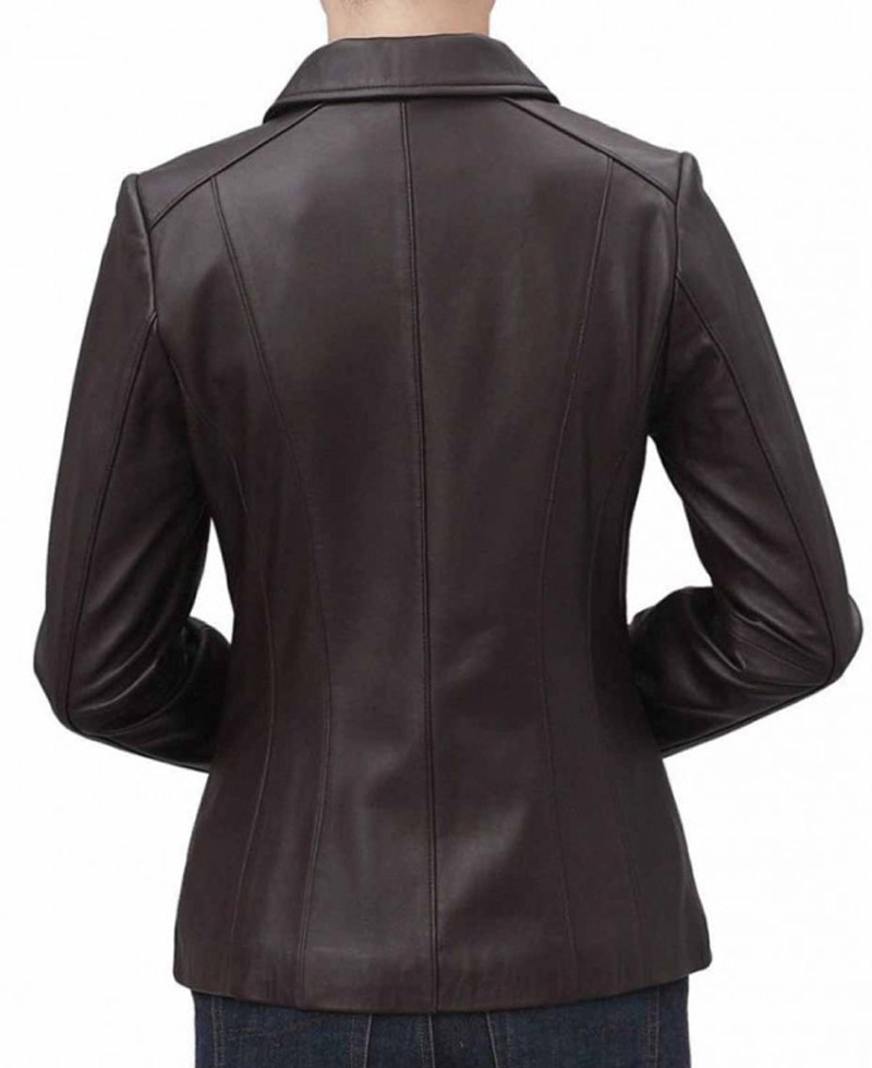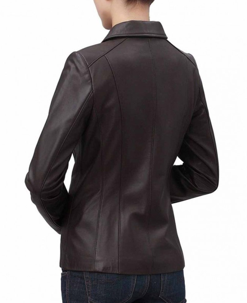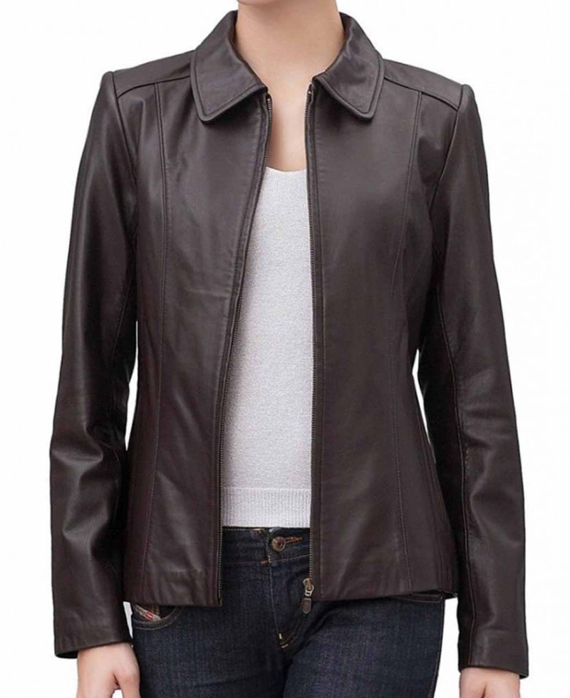 Unique apparel is for unique personalities. Shirt collar jacket has captivating appearance. It has been made from genuine leather and also has faux leather. The interior is made from soft viscose material. The apparel has shirt style collar with zip terminating front for closing add glam in your look. Sleeves of the outfit are full with open hem cuffs. Women’s brown leather jacket is available in fabulous brown color. The jacket has two sides pockets on waist line its make it more outstanding and adorable. Perfect stitching makes it classier.